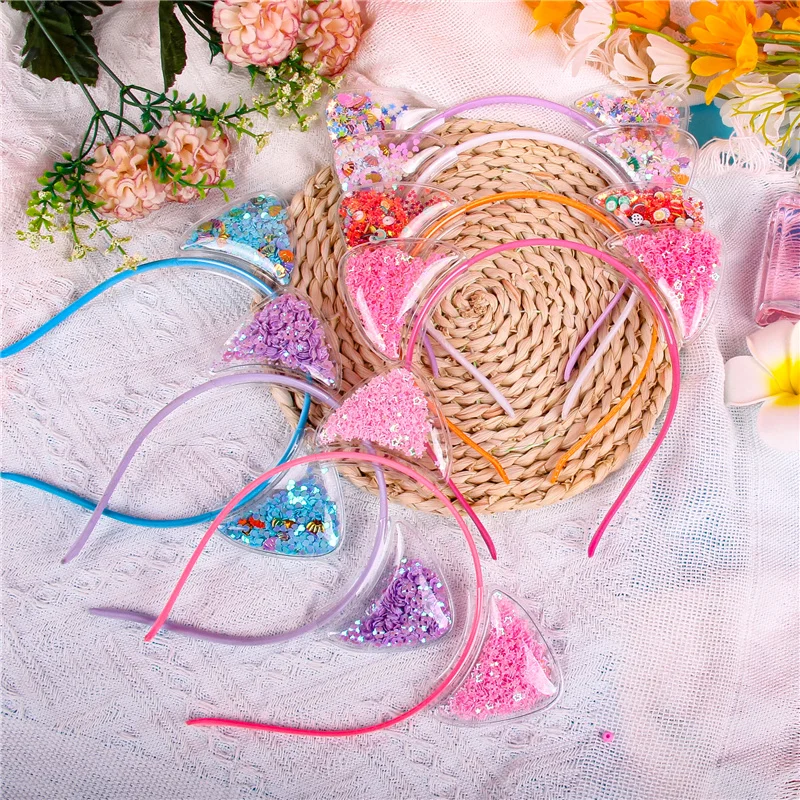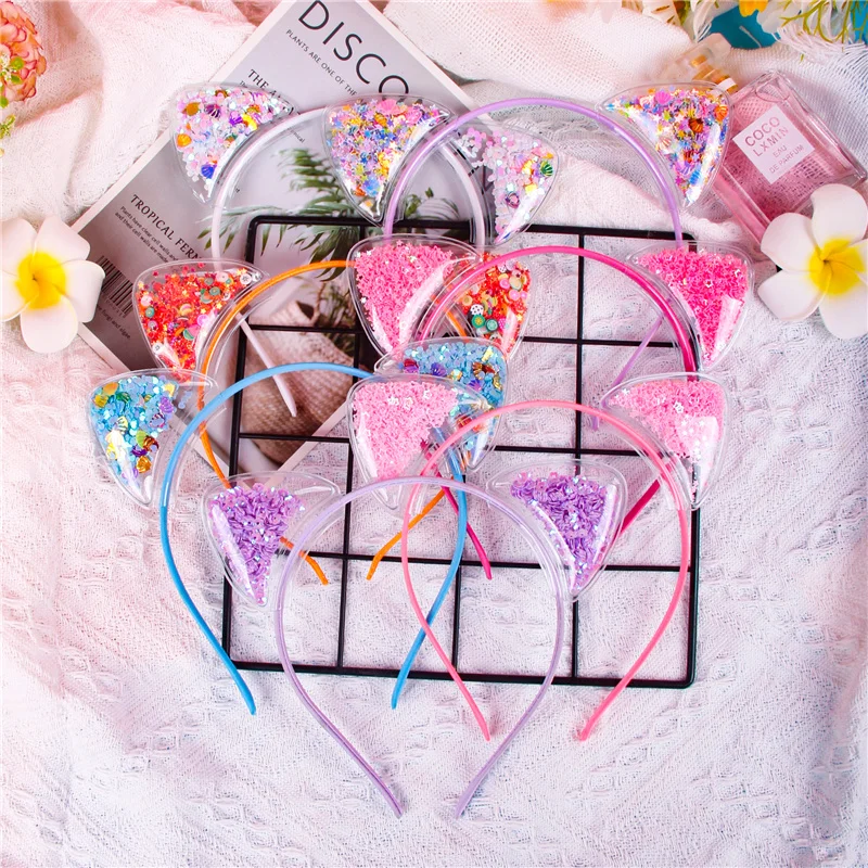 1 шт., новинка, Детская повязка на голову с блестящими звездами, блестками, зыбучим песком, Детский милый блестящий обруч для волос, бант для девочек, кошачьи ушки, аксессуары для волос