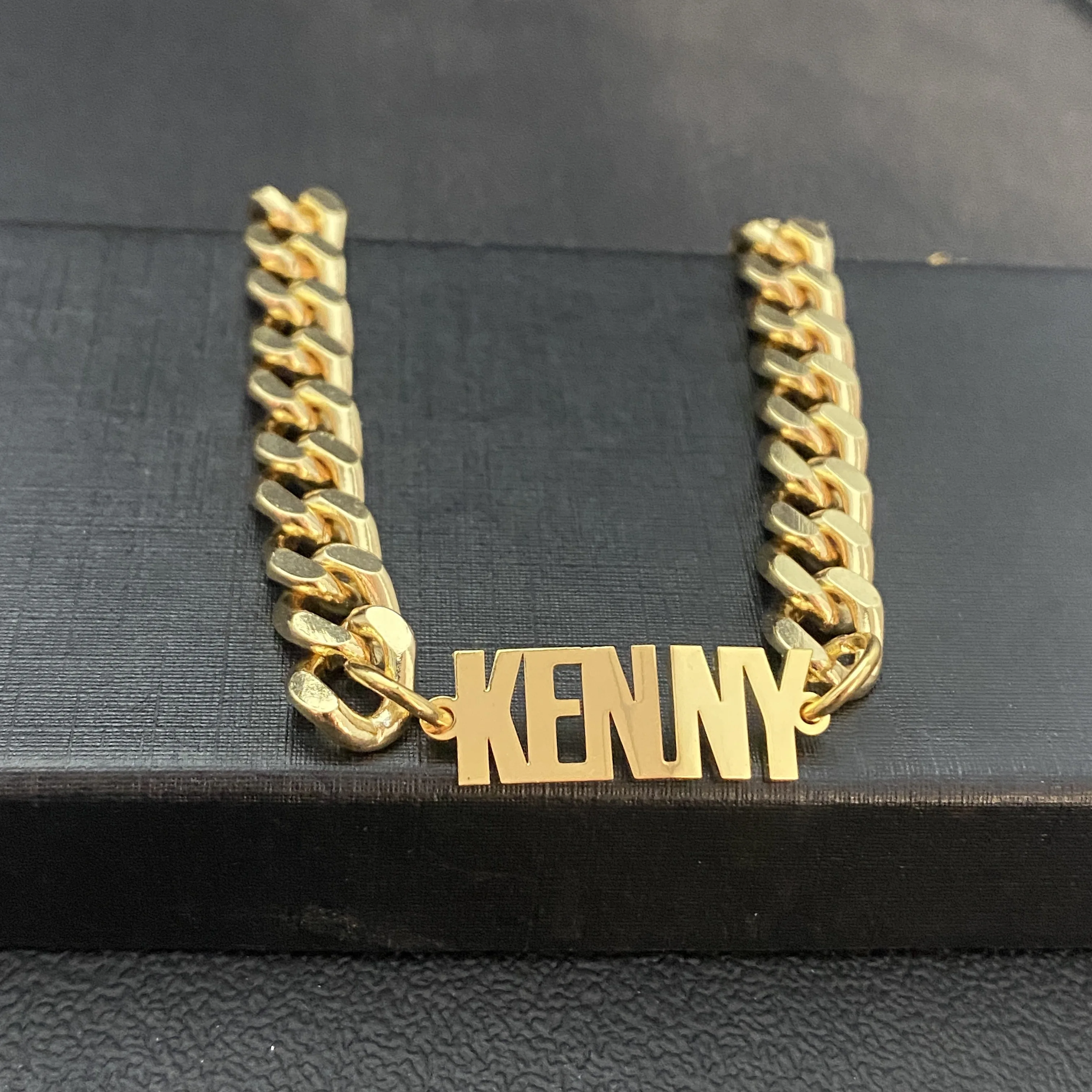 Браслеты Noelia из нержавеющей стали под заказ для женщин и мужчин, Золотая кубинская цепочка 8 мм, персонализированная Классическая табличка, ювелирные изделия