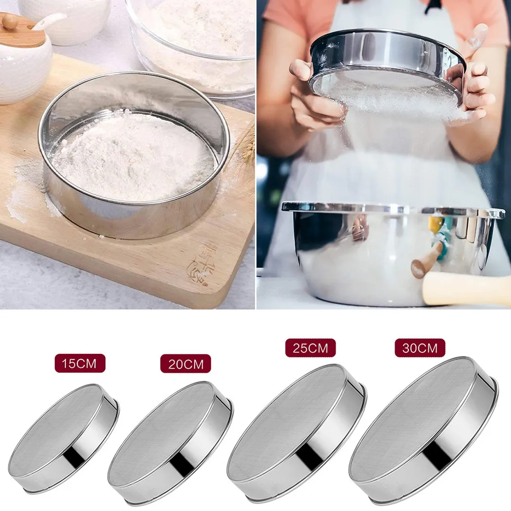 Характеристика:* 100% новый и высокое качество* Использование пищевой нержавеющей стали, которая может напрямую связаться с пищей, имеет высокую твердость, коррозионную стойкость и долговечность.* Легко чистить, пожалуйста, сохраняйте сухость после очистки.* Мукомольные сетки ровные, что делает фильтрованную муку более тонкой и гладкой.* Используется для пыли рабочей поверхности хлеба, теста для пиццы, печенья для торта.* Очень подходит для безглютеновой диеты.* Очень подходит для просеивания муки, Дарем пшеницы, рисовой лапши и просеивания супа.Спецификация:* Материал: нержавеющая сталь* Дополнительный диаметр: 15 см, 20 см, 25 см, 30 см (приблизительно)* Цвет как показаноПосылка:1 х сито для мукиПримечания:1. Из-за различных факторов, таких как яркость дисплея и светильник яркости, в зависимости от фактического цвета продукта могут быть s светильник ly отличается от веб-сайта картину.2. Пожалуйста, допускайте небольшое отклонение между данными и ручными измерениями.