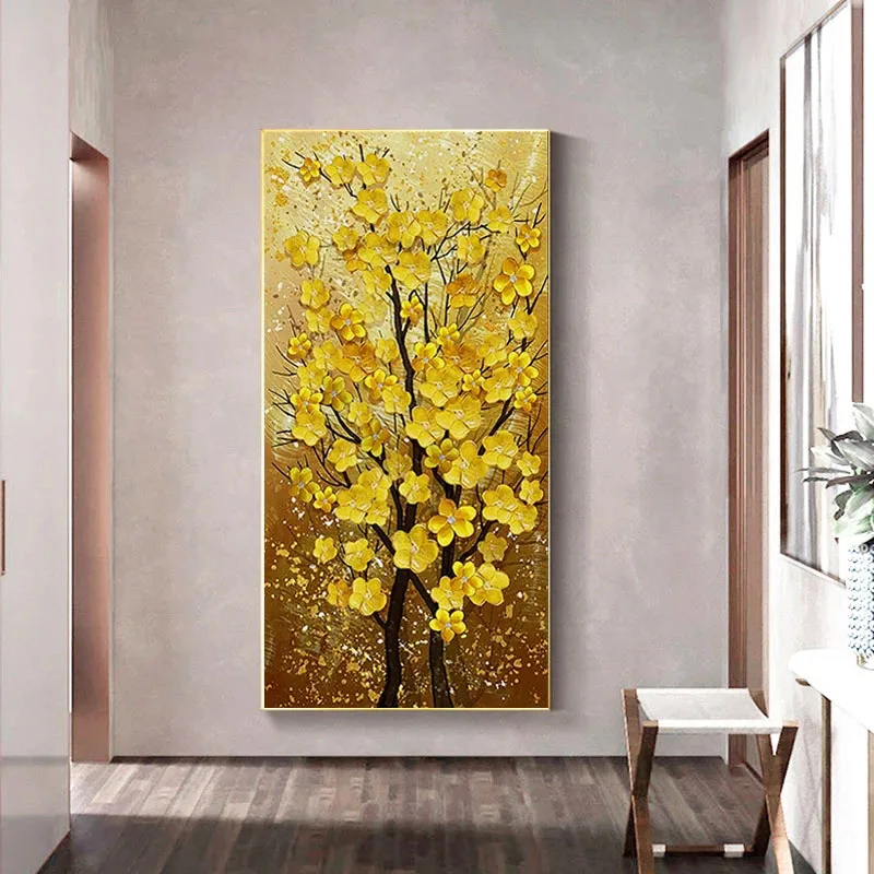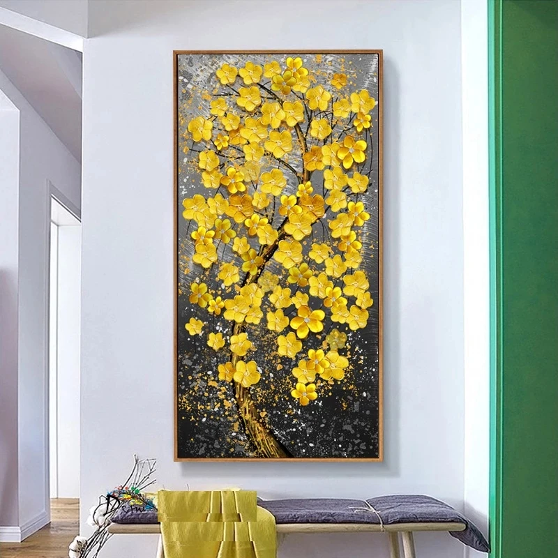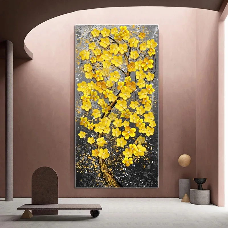 Современная Картина на холсте, Печатный холст, золотое, желтое, богатые деревья, цветы, фотография стены для гостиной