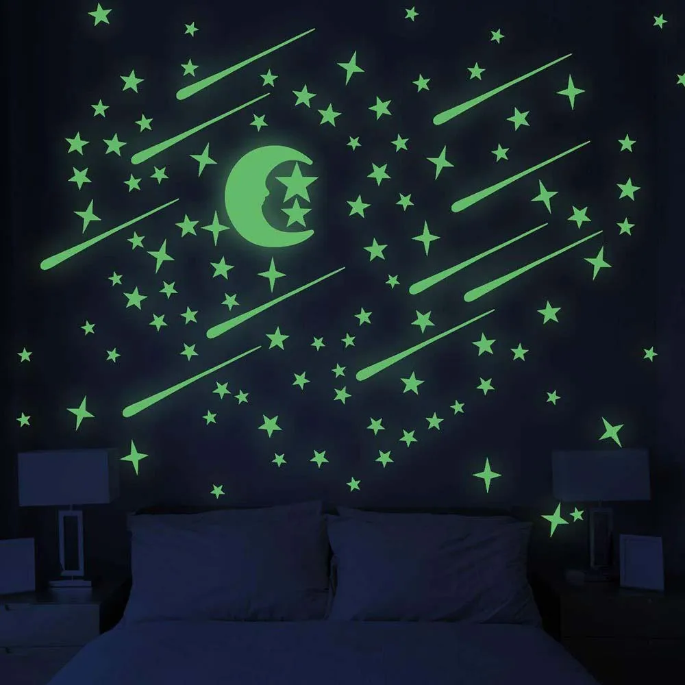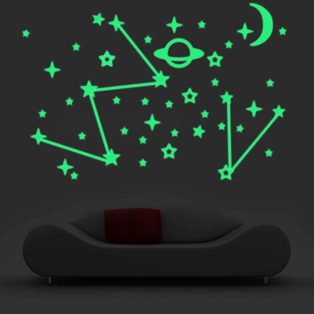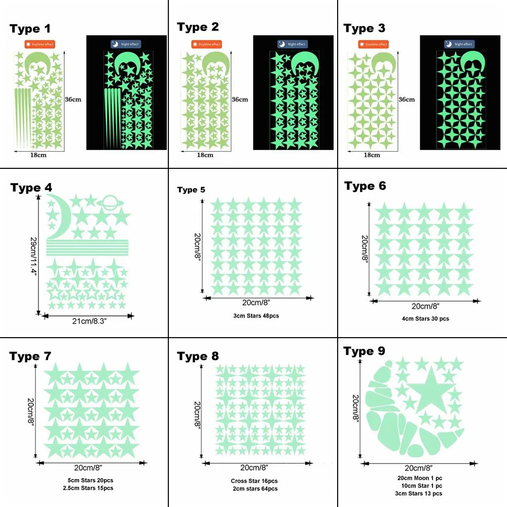 Наклейка для детской комнаты, светящаяся в темноте, флуоресцентная, 1 комплект, звезды, луна, точки, Светящиеся Настенные наклейки