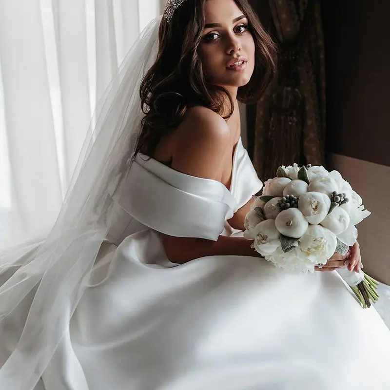 Элегантное свадебное платье с открытыми плечами, свадебные платья принцессы, атласное винтажное платье с длинным шлейфом, белое свадебное бальное платье Lvory