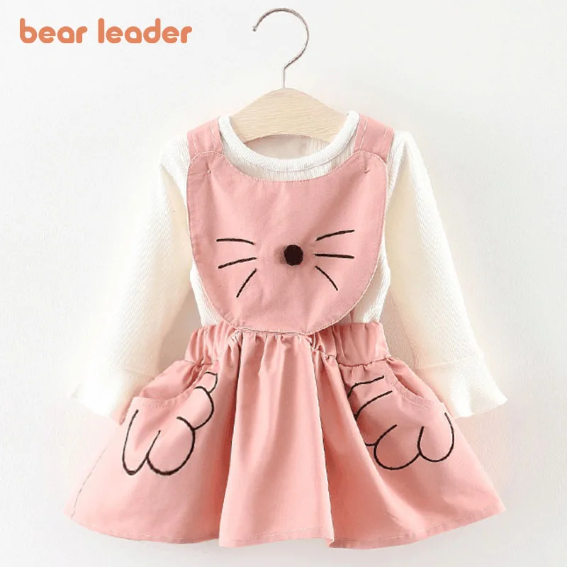 Bear Leaderплатье с героями мультфильмов для новорожденных девочек новые весенне-осенние милые костюмы для маленьких девочек, детская праздничная одежда для От 0 до 2 лет
