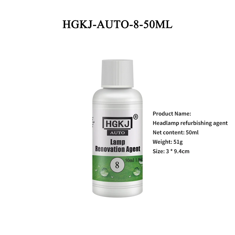Средство для ремонта ламп HGKJ, 8 дюймов, 20 мл, набор для полировки автомобильных фар, средство для химического покрытия фар, ярко-белые инструменты