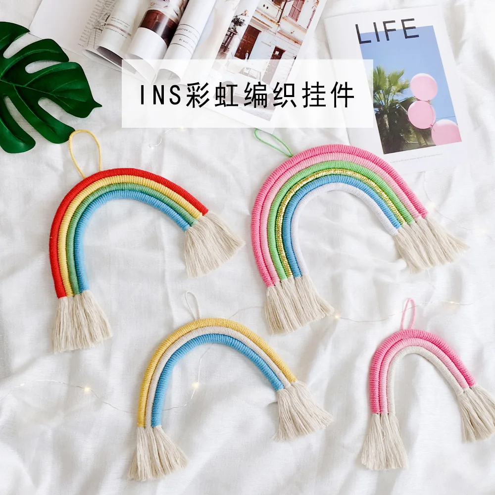 Украшение Ins в скандинавском стиле, украшение для дома, подвеска для детской комнаты, плетеная Радужная настенная декорация, 7 шт.