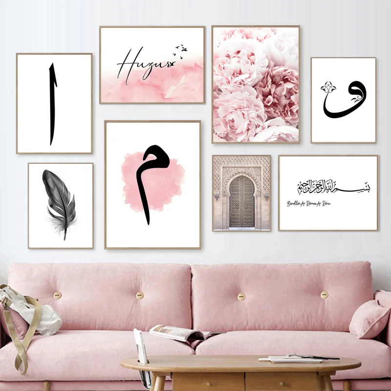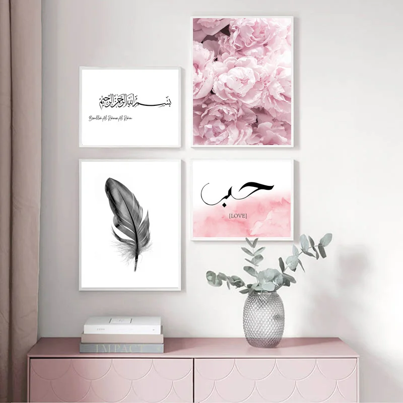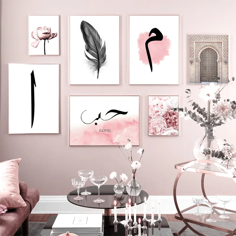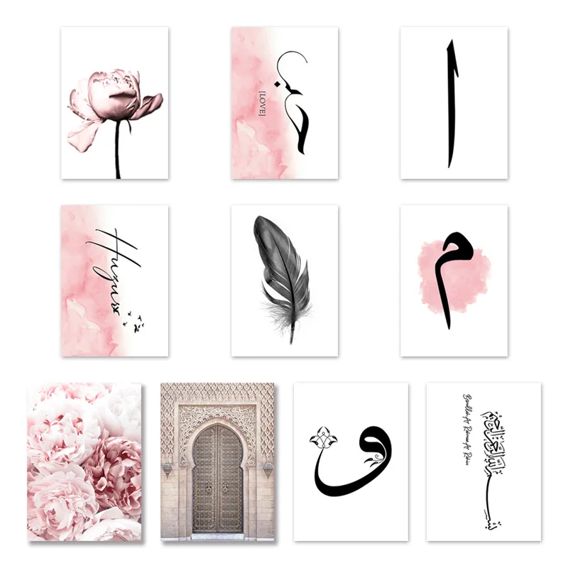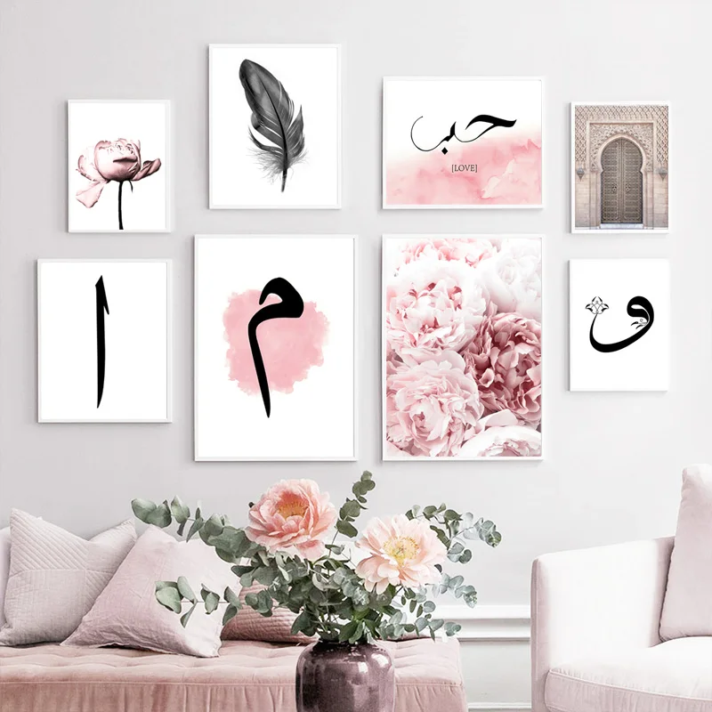 Настенная картина с цветами, бежевый холст, постер с цитатами, араб...