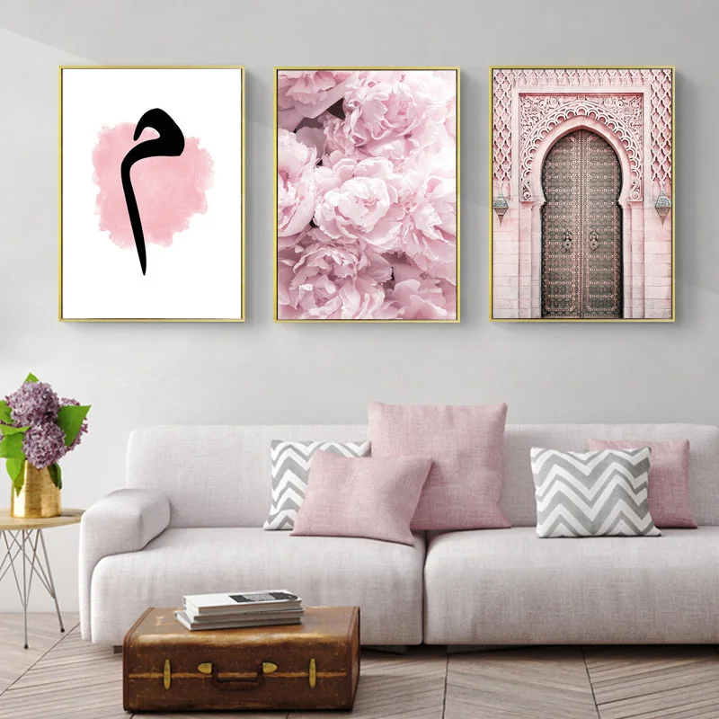 Исламский аллуху Акбар луна звезды розовый детский постер на холсте...
