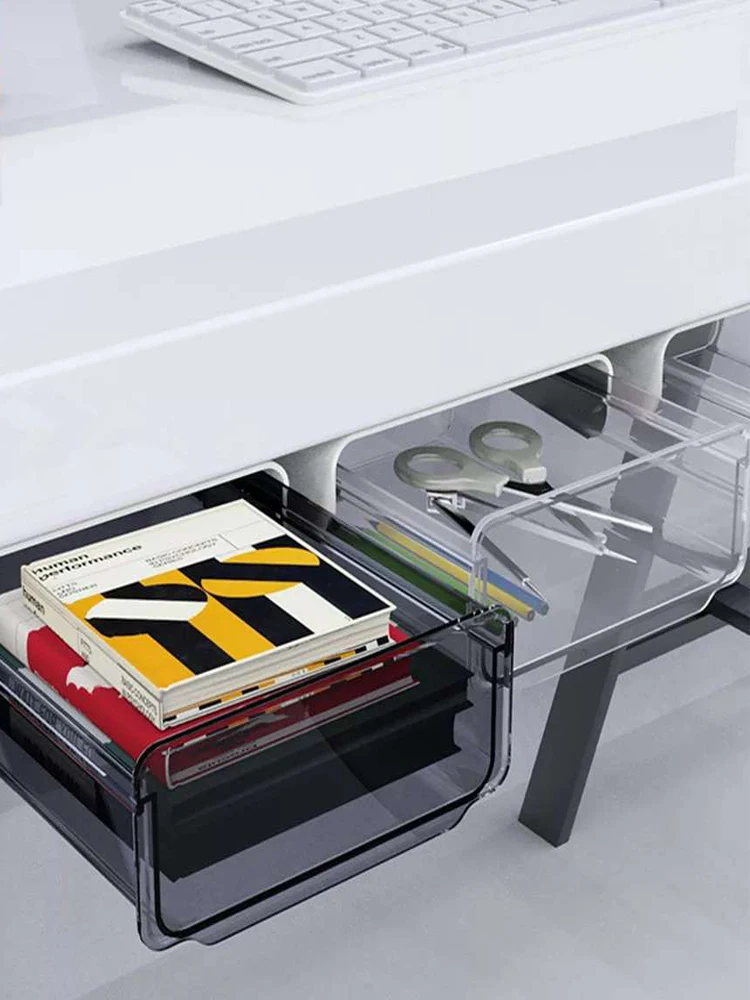 * Он спрятан в нижней части рабочего стола, экономит место, даже не входит в поле зрения, защищает ваши личные предметы хранения.