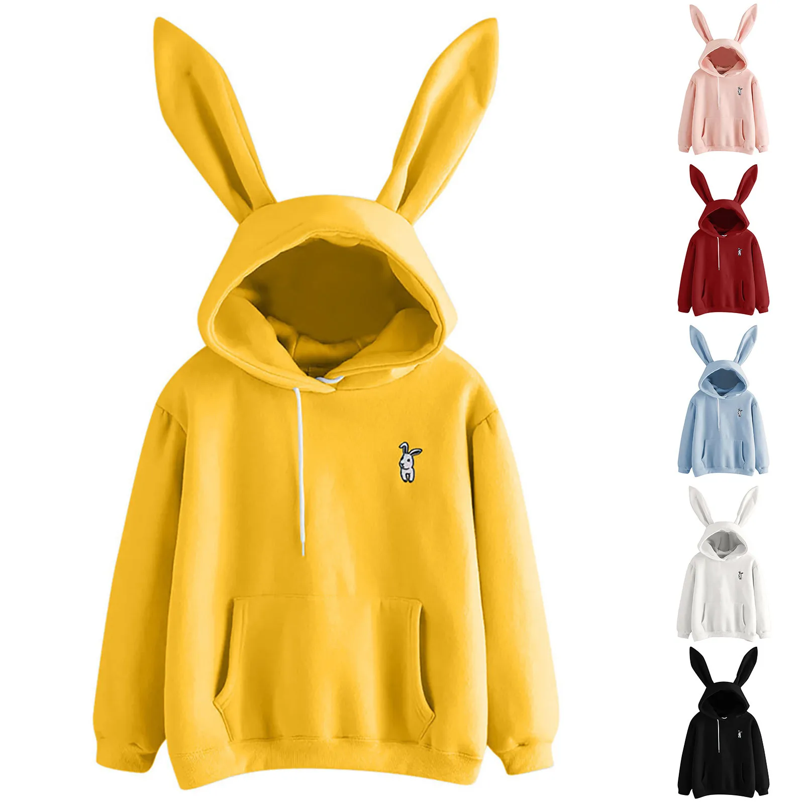 Женская толстовка с капюшоном, с длинным рукавом и кроличьими ушками