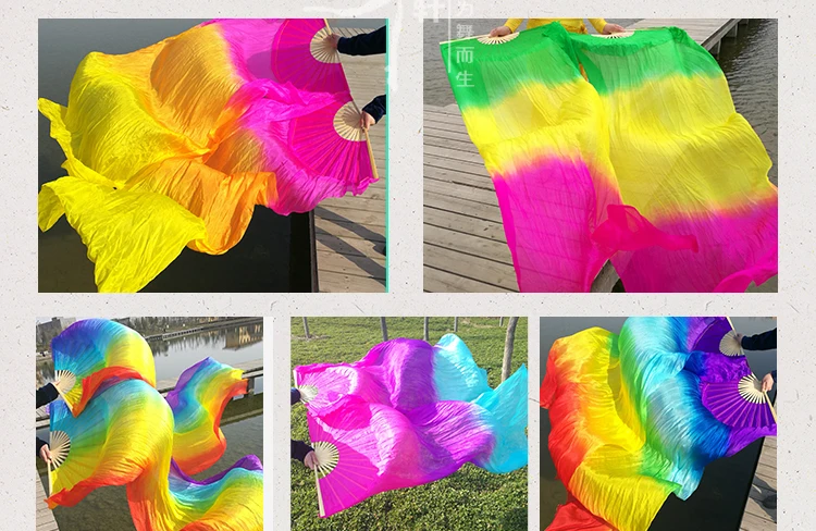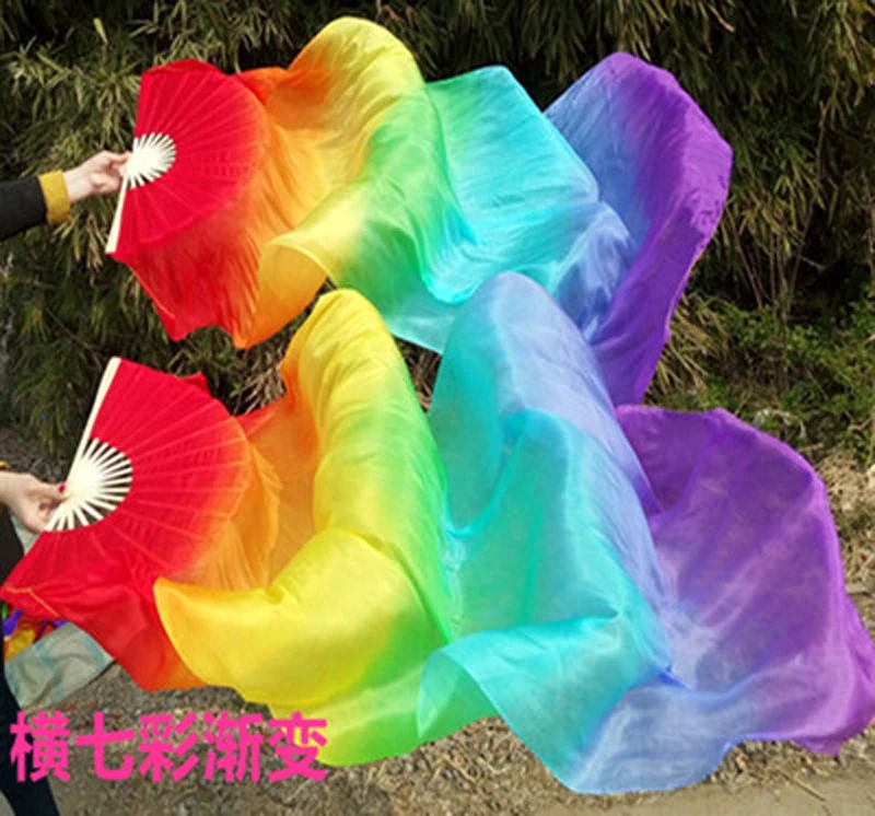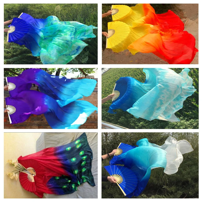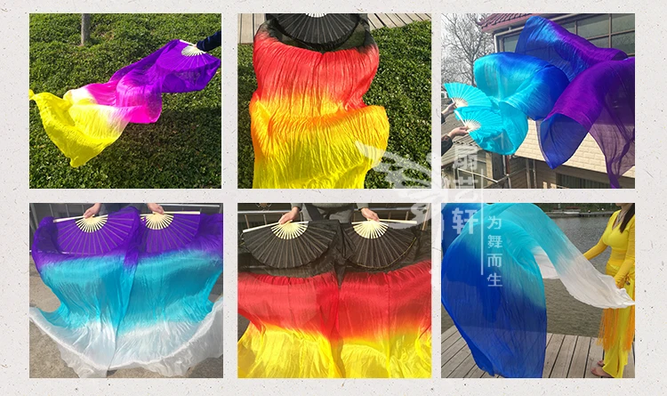 Веер-Веер для восточных танцев, 1 пара (1л + 1р), из 100% натурального шелка, с цветным градиентом, Шелковый веер для танца живота