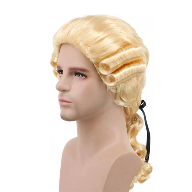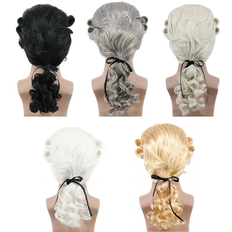 Парик мужской длинный синтетический для косплея, с кудрявыми судьями в стиле барокко, серо-бело-черного цвета, для Хэллоуина, с шапочкой