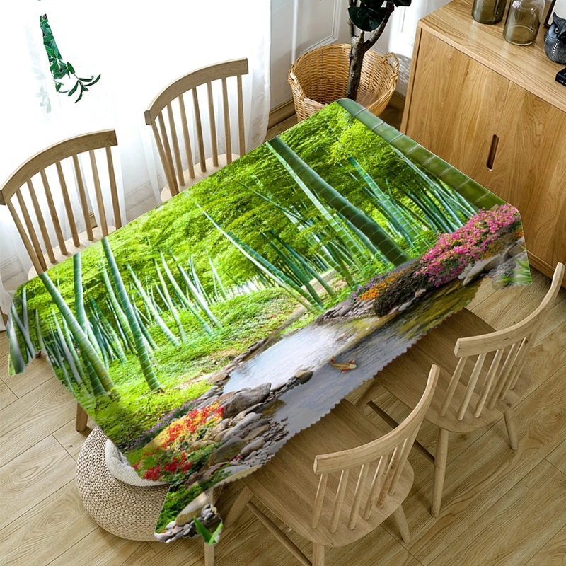 Красивая утолщенная хлопчатобумажная скатерть с цветами и Бруком, 3d Рисунок зеленого мира, морской пейзаж, моющаяся ткань, прямоугольная круглая скатерть