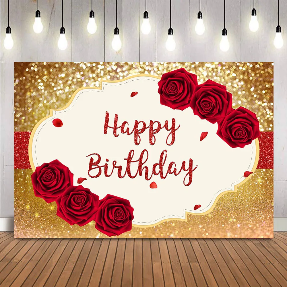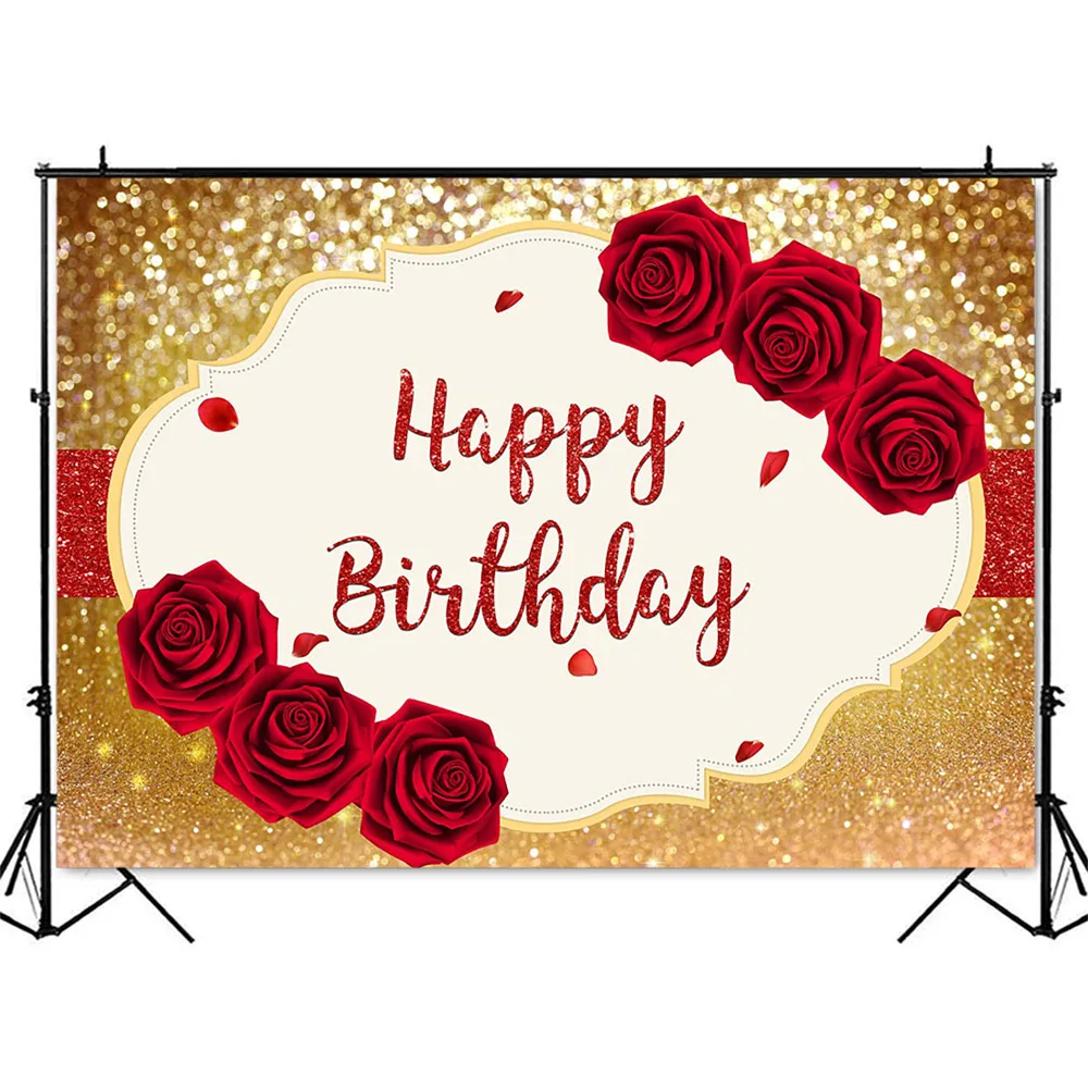 Фон с розовыми розами и блестками Happy фон для фотосъемки на день ...
