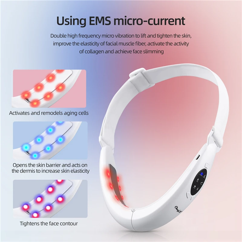 CkeyiN микротоковый V Пояс для формирования лица EMS массажер для похудения лица с двойным подбородком для снятия лица лифтинг светодиодный фотон для щек