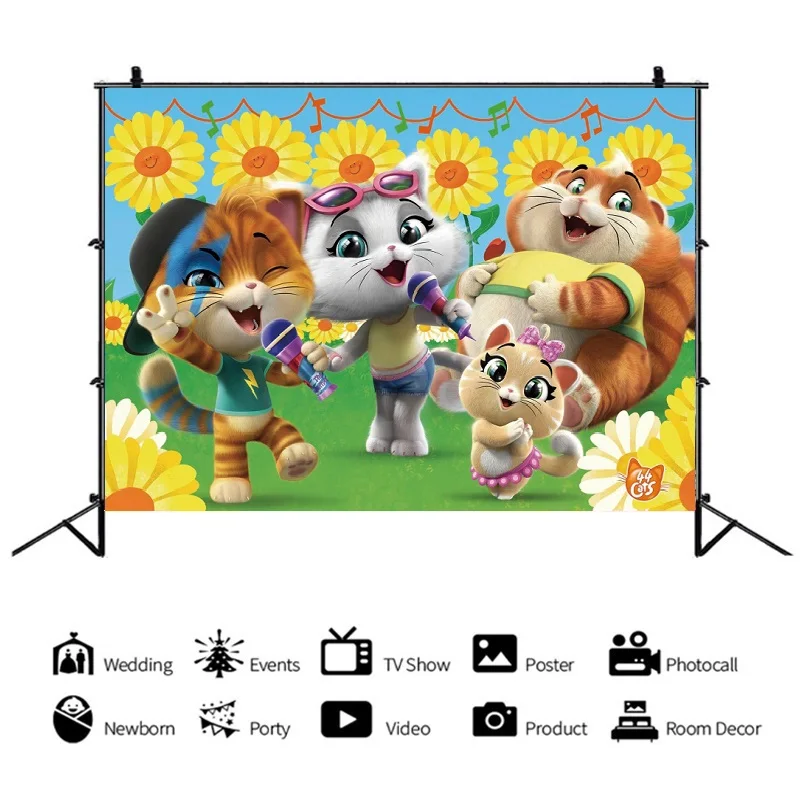 Фоны для фотосъемки с подсолнухами 44 кошки мультяшное пение кошка настраиваемые имена для девочек вечеринка в честь Дня Рождения