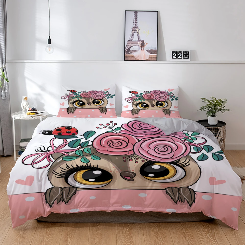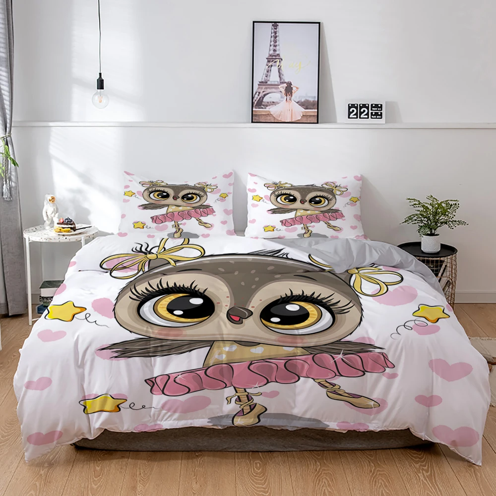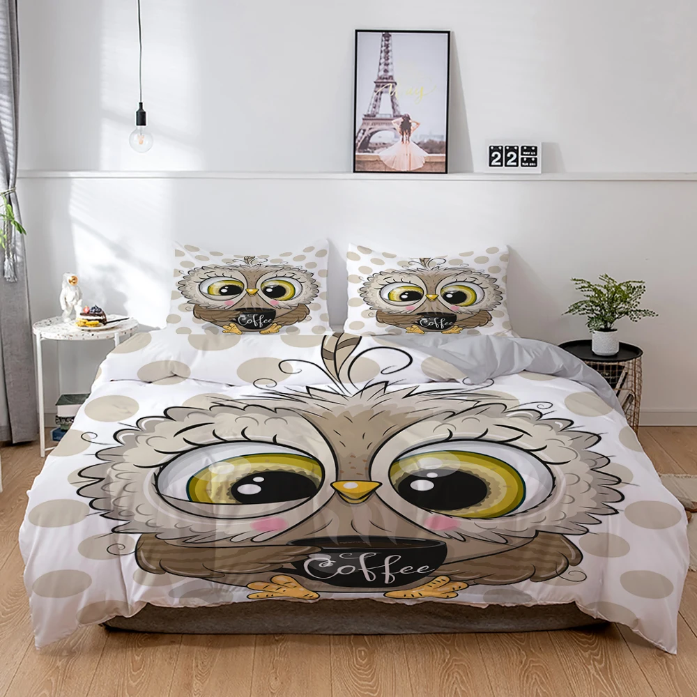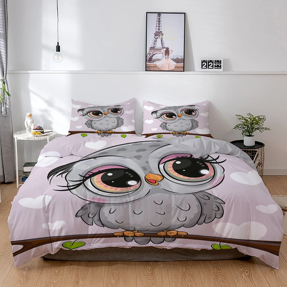 Комплект постельного белья ZEIMON с мультяшными совами, комплект из 2 простынейстеганого одеялапододеяльника и наволочки, мягкое постельное белье, 3D