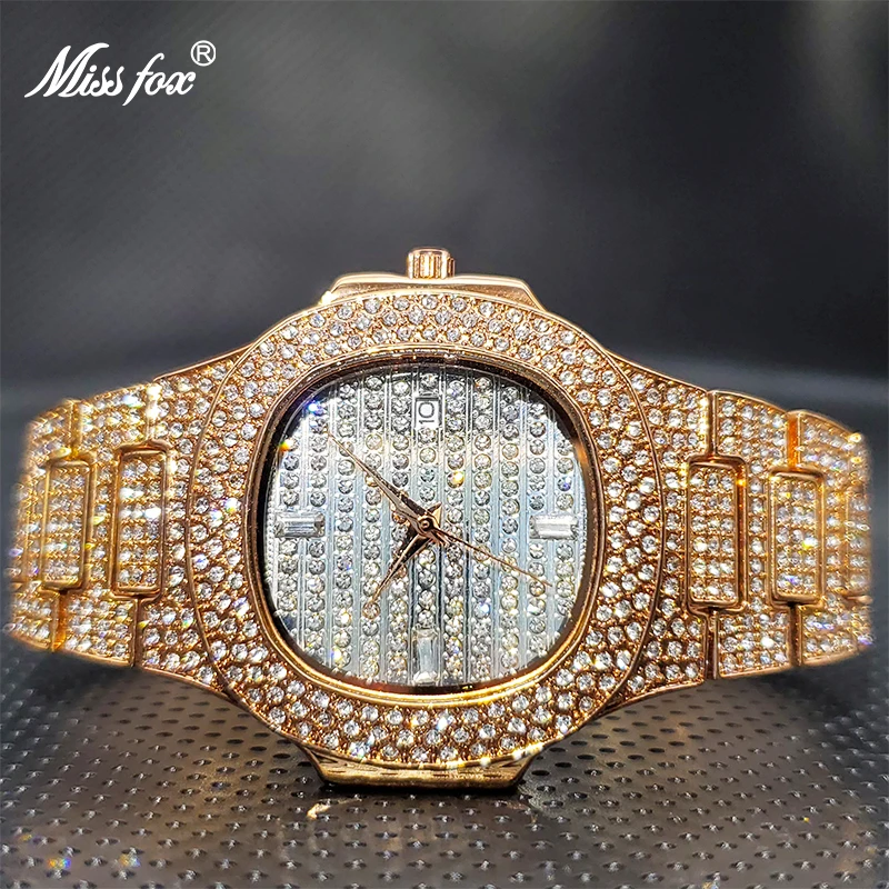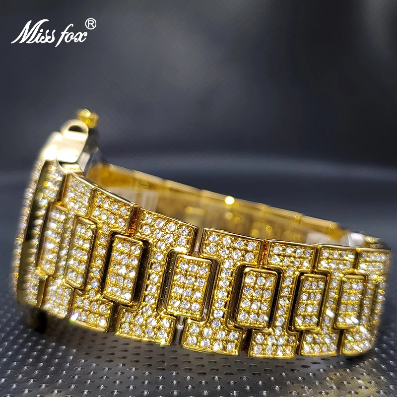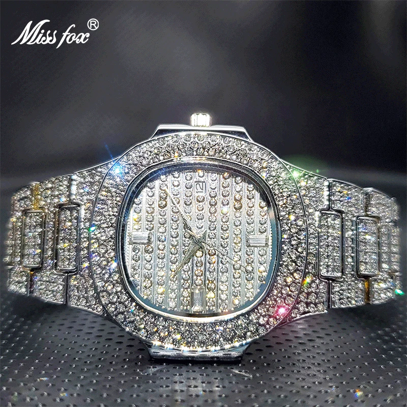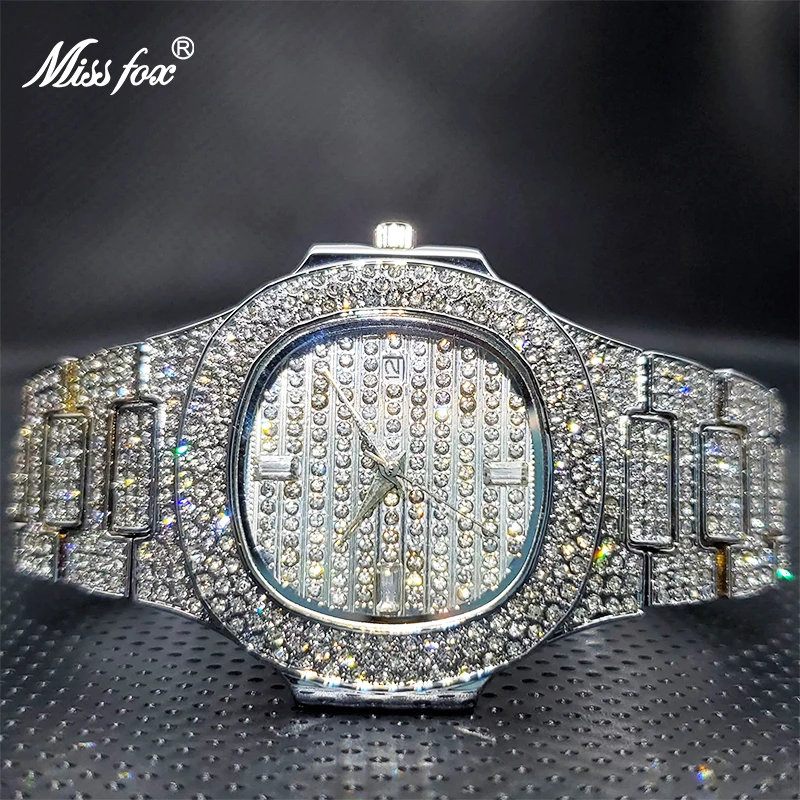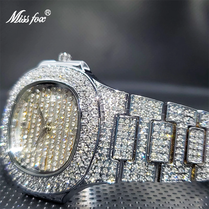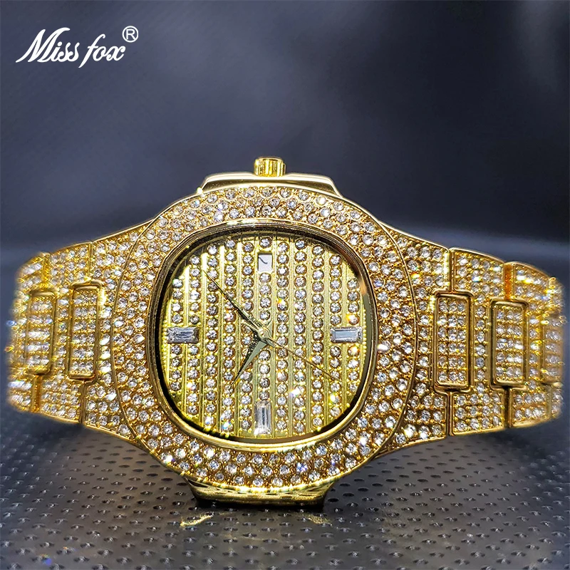Роскошные мужские кварцевые часы MISSFOX Geneva, повседневные модные дизайнерские часы со стразами, водонепроницаемость 30 м, качественные мужские часы