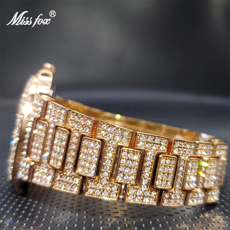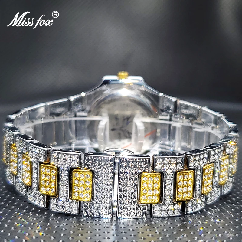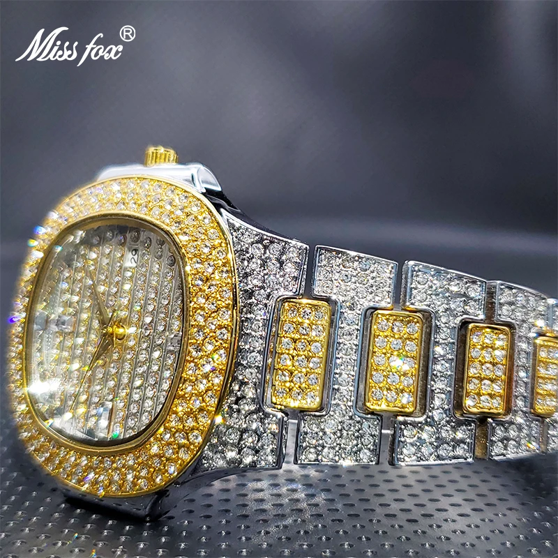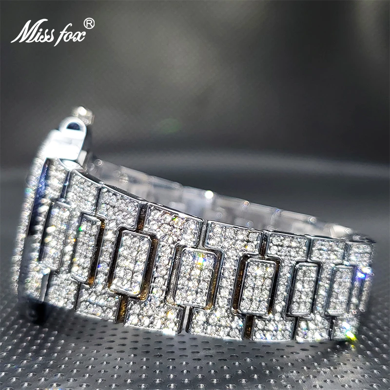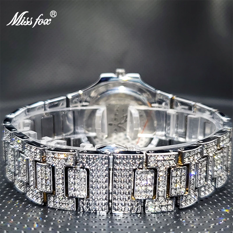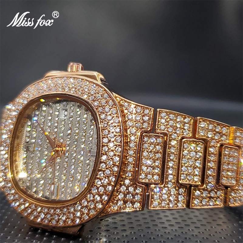 Роскошные мужские кварцевые часы MISSFOX Geneva, повседневные модные дизайнерские часы со стразами, водонепроницаемость 30 м, качественные мужские часы