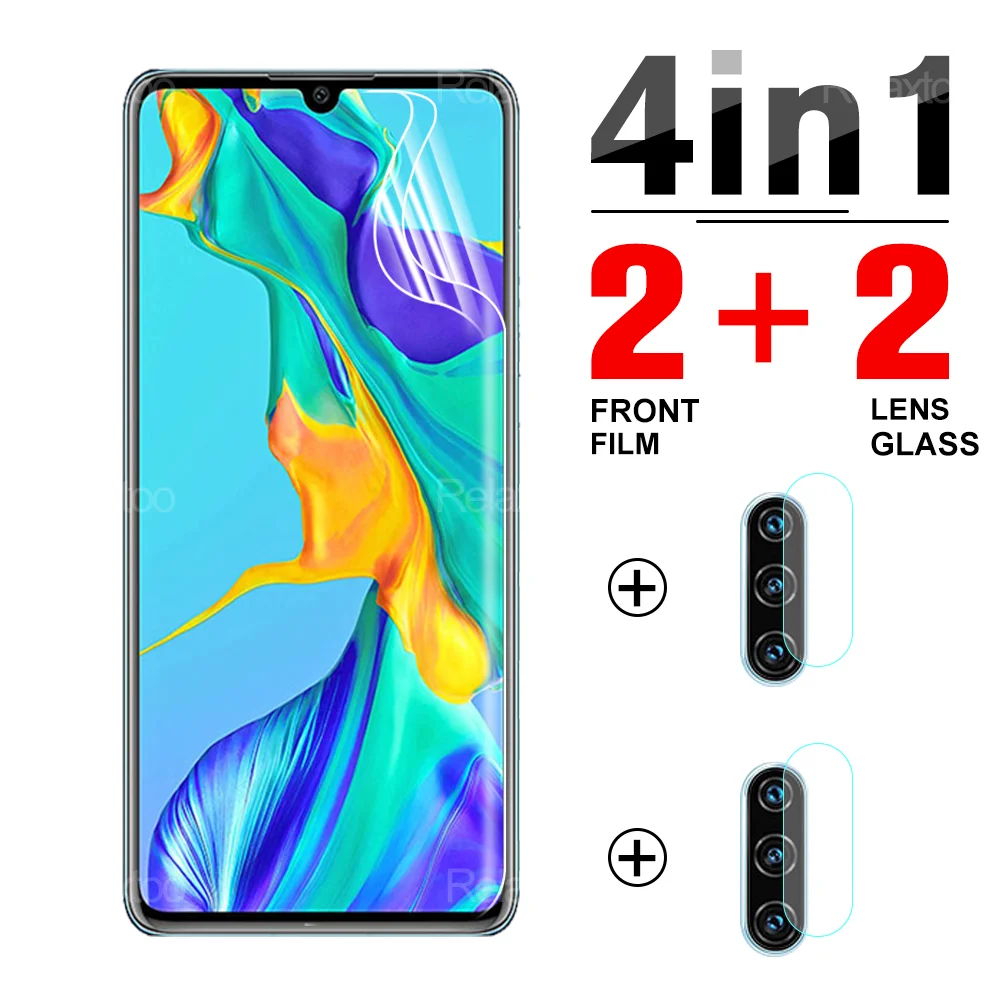 4-в-1 2 шт Передняя пленка + 2 шт мягкое стекло объектива для Huawei P30 P20 Lite E Pro Plus Защитная пленка для экрана на P 30