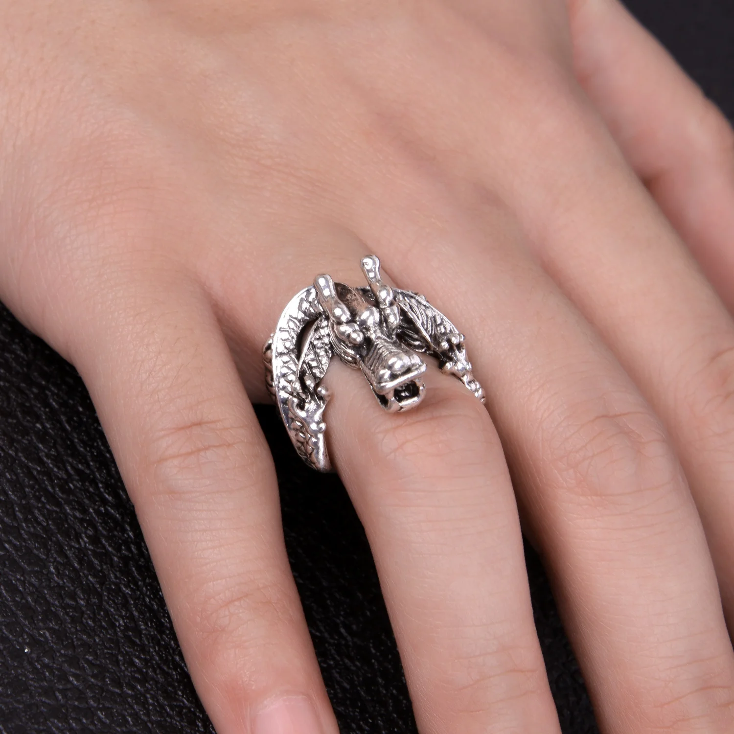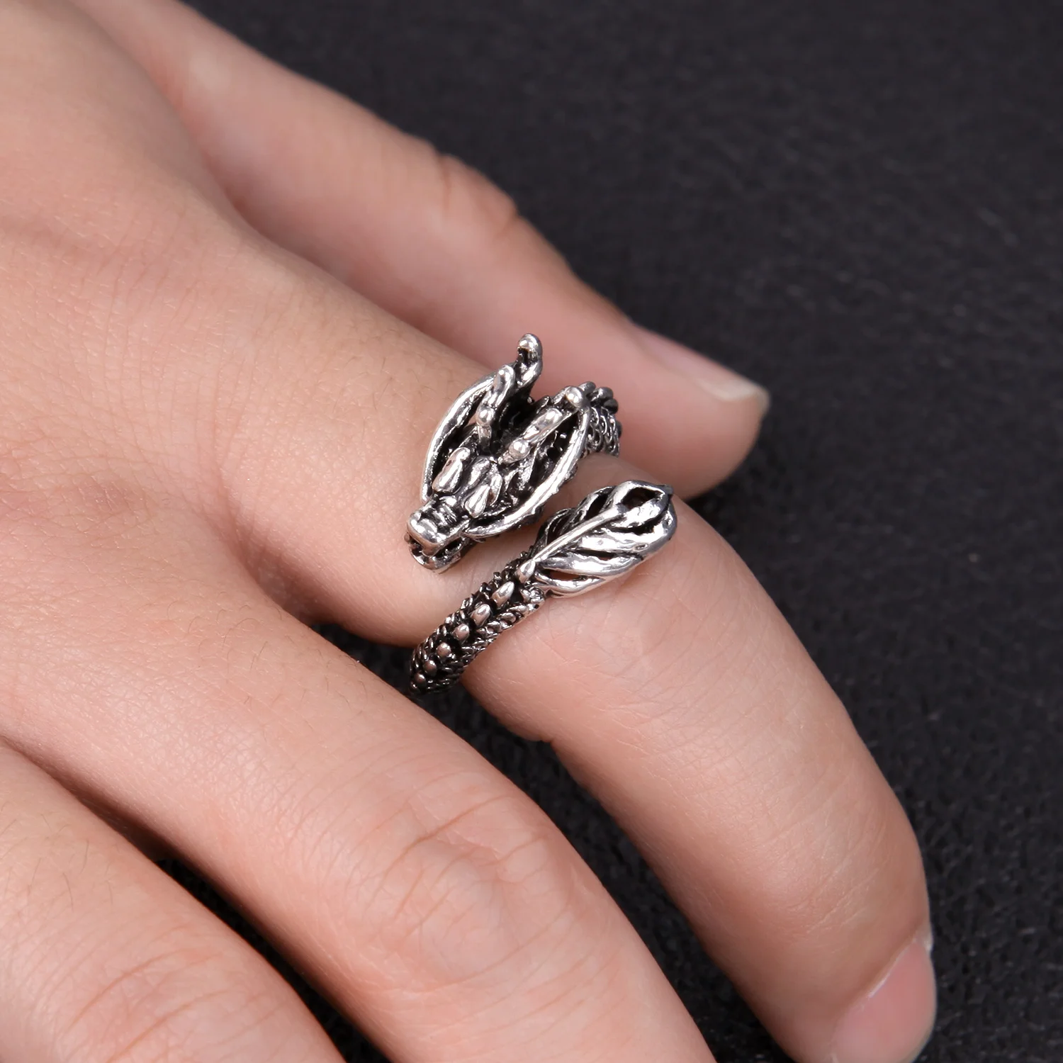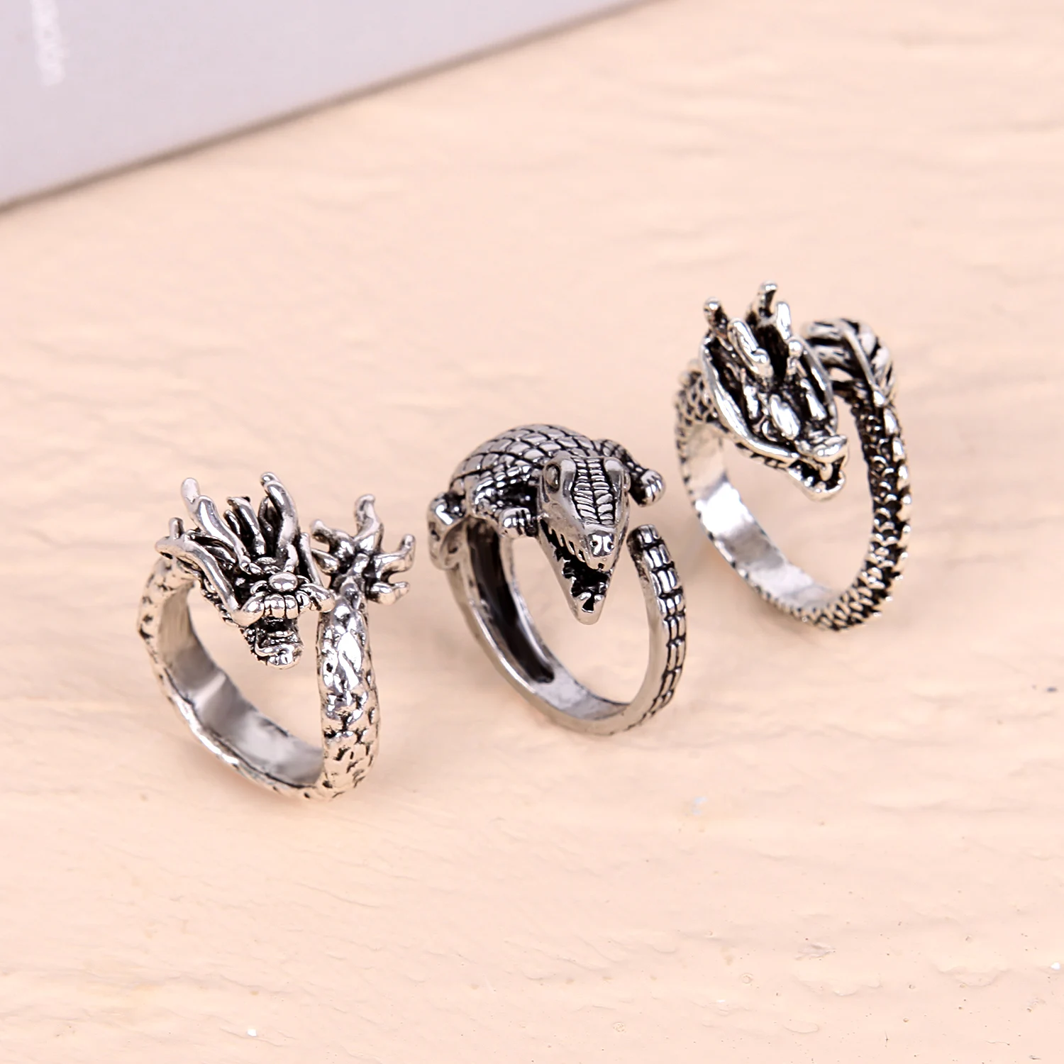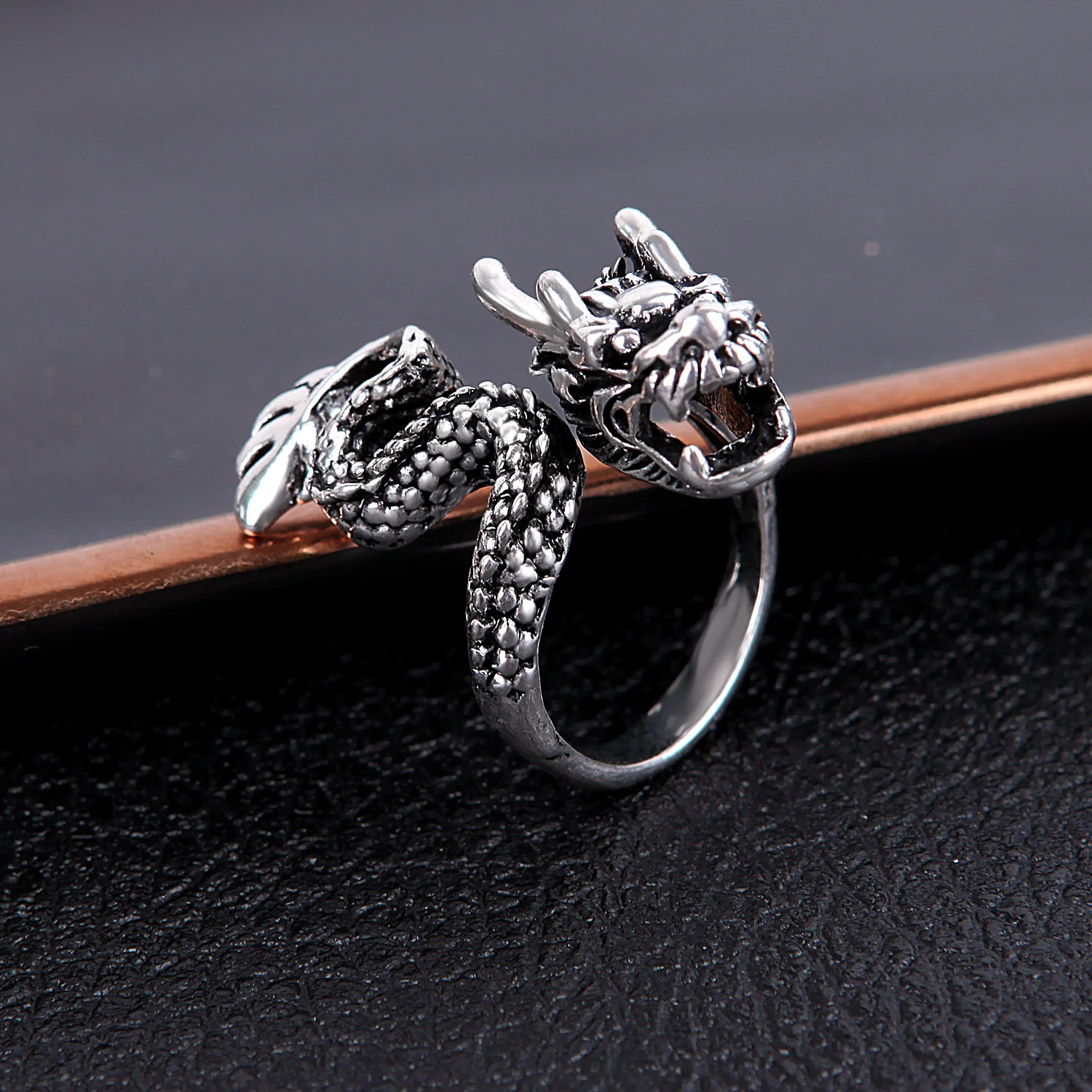 Мужское Винтажное кольцо с драконом, регулируемое кольцо из сплава ...