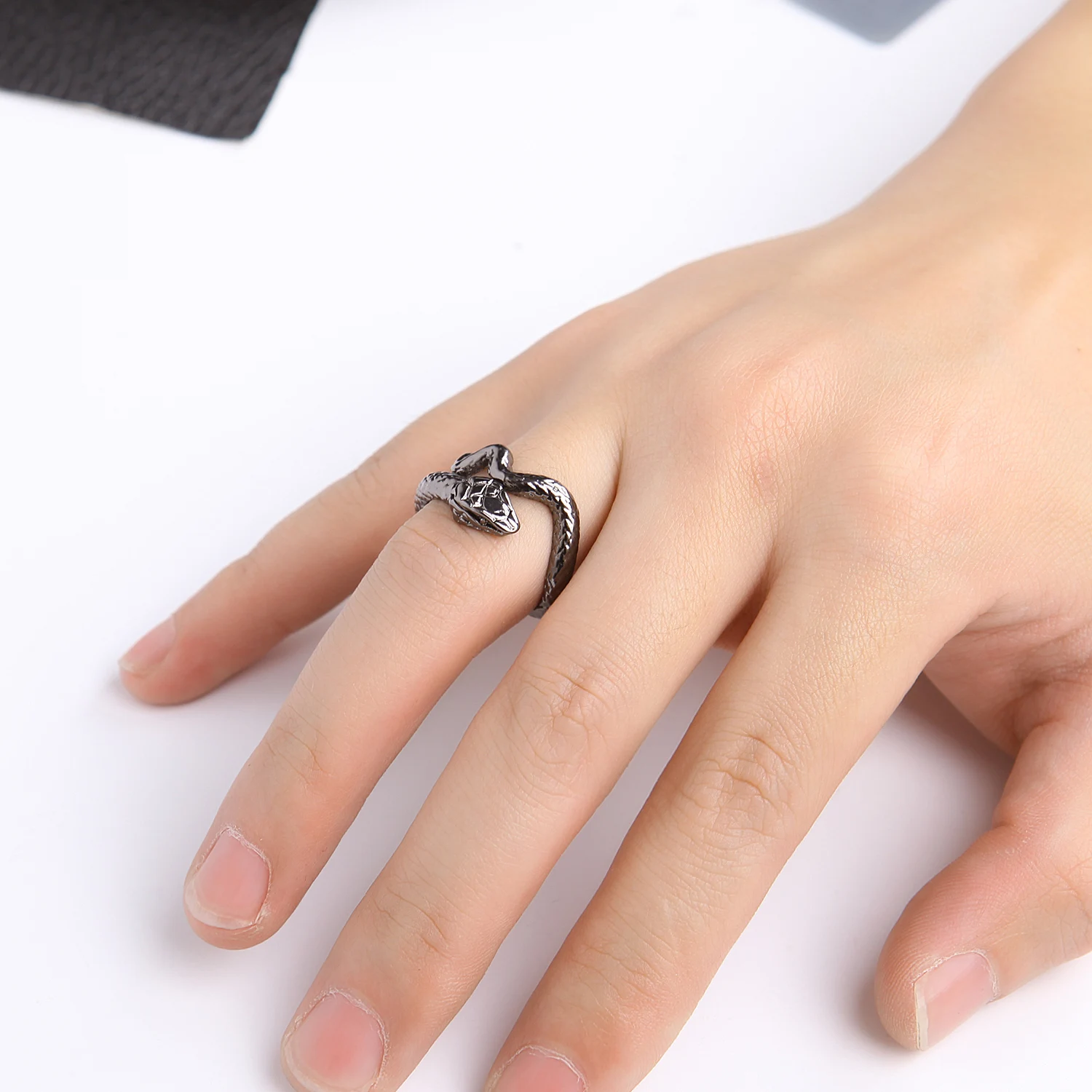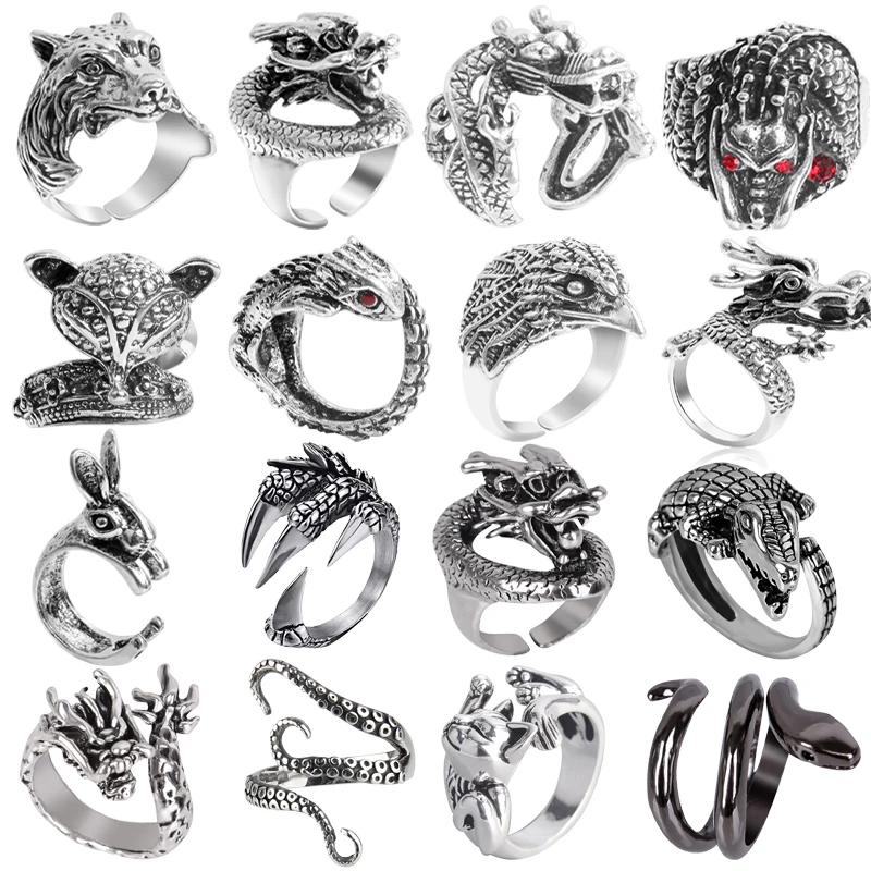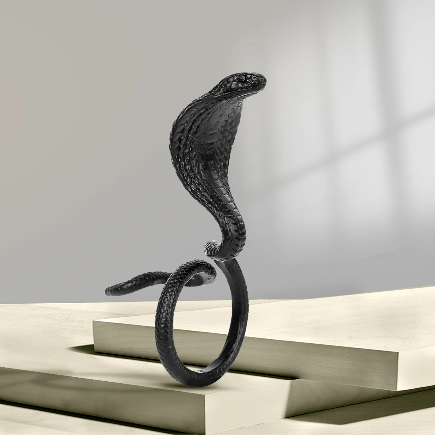 Винтажное кольцо в виде змеи черного и серебряного цвета, металлическое регулируемое животное, большое кольцо на палец для женщин и мужчин, ювелирные изделия для вечеринок, подарок