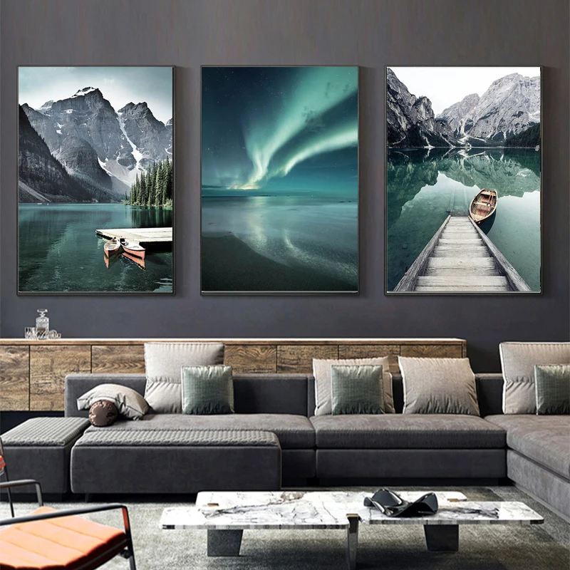 Скандинавская картина, пейзаж из путешествия холст, картина горная ...