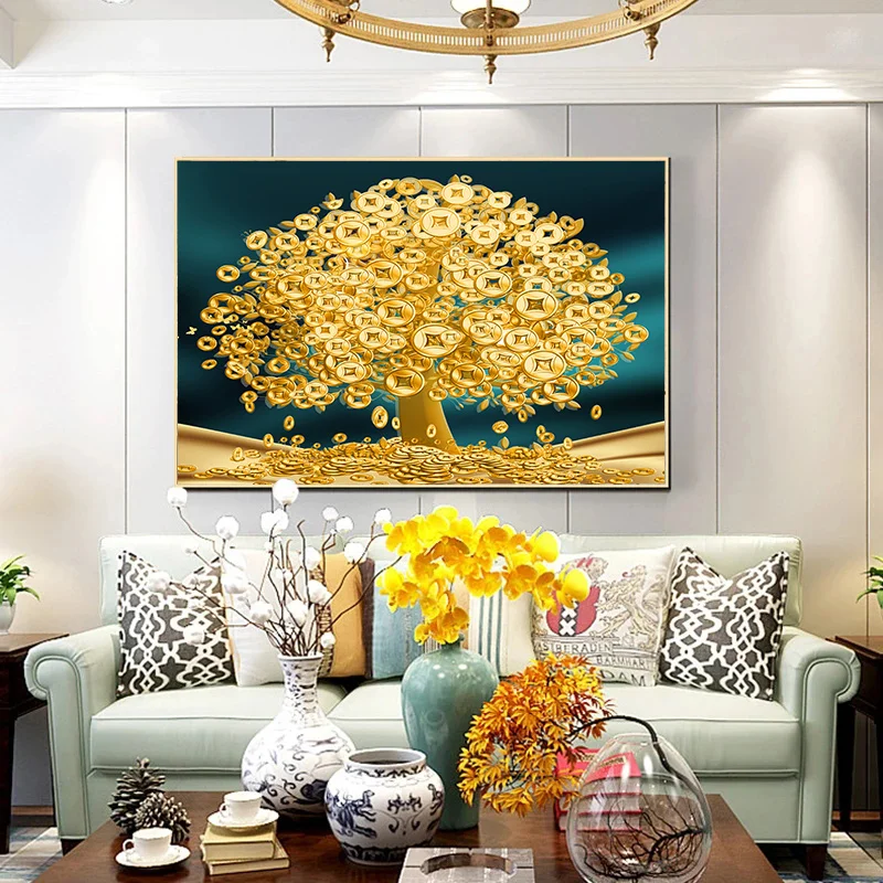 Светильник лая Роскошная золотая Картина на холсте с деревом, пейза...