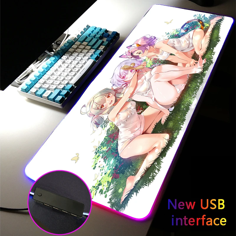 Аниме Сексуальная девушка Genshin ударопрочный RGB коврик для мыши XXL для детской мыши с четырьмя USB-портами и интерфейсом Type-EC Настольный коврик с несколькими интерфейсами