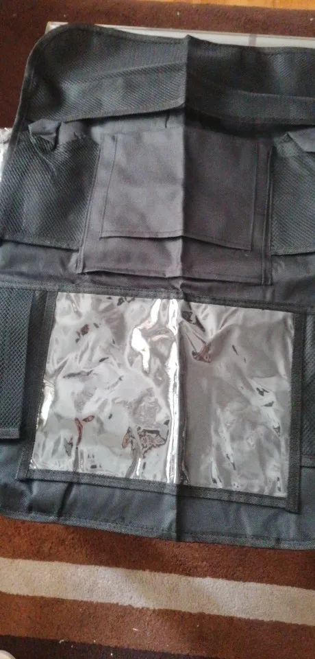 на вид неплохой. карман много. верхняя крепление понятно через подголовник, но зачем нижний через спинку кресла вообще не понятно. нельзя было под сиденье крепления сделать.