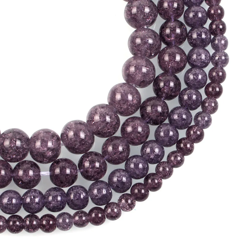 Бусины из натурального камня, лепидолит, фиолетовая слюда, круглые ...