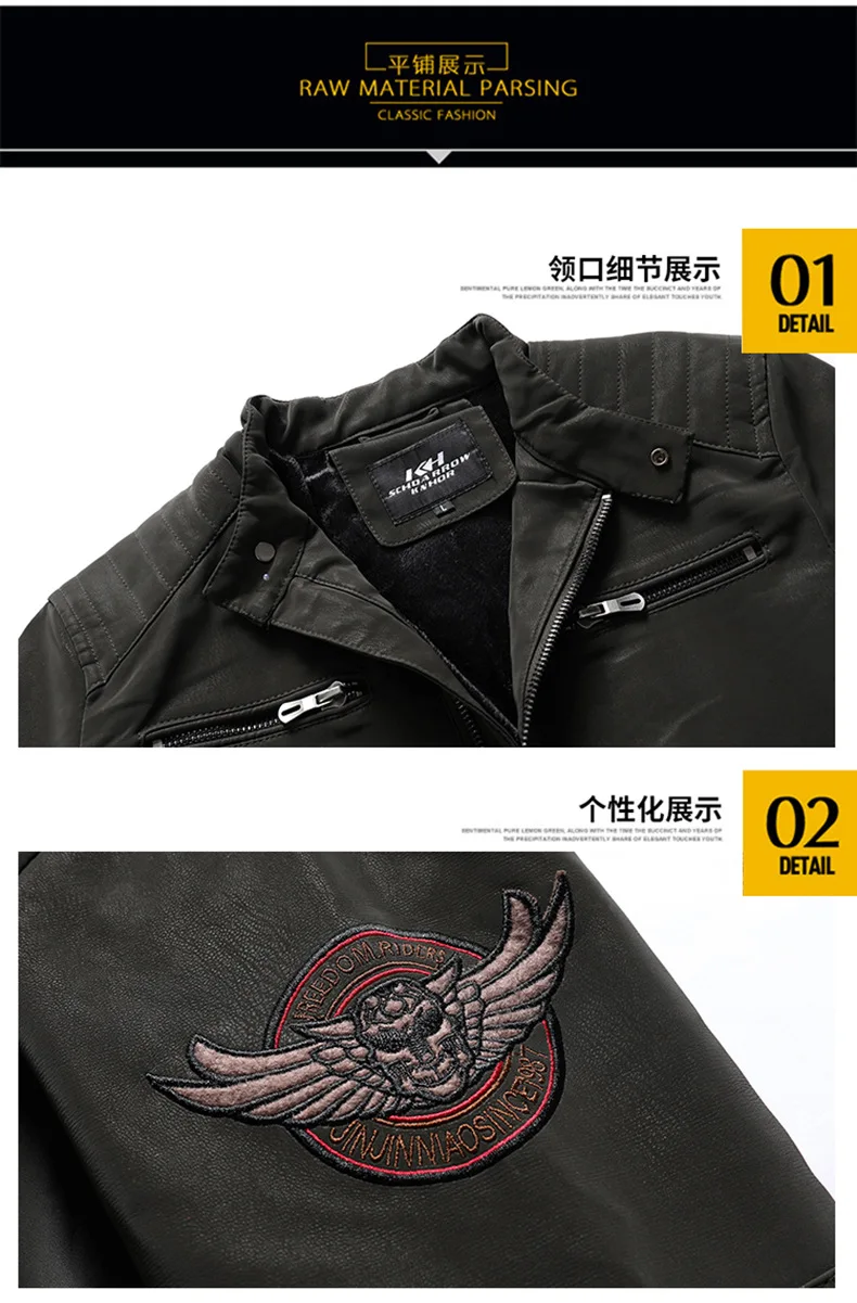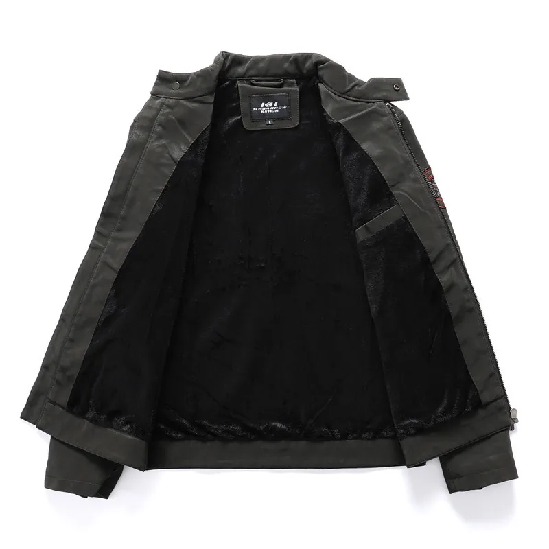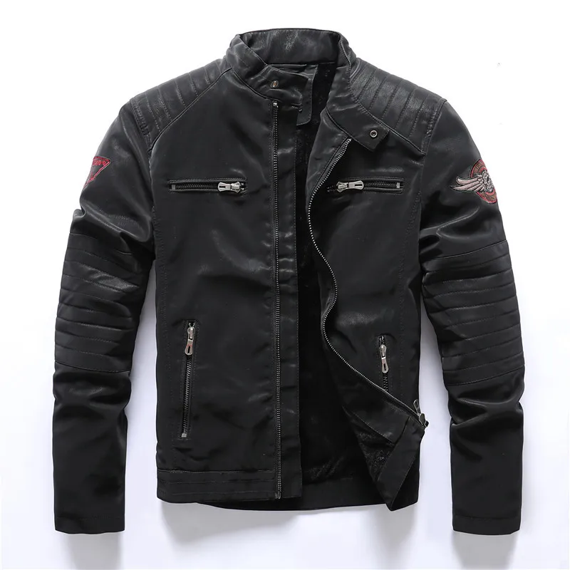 Мужская кожаная куртка с вышивкой черепа, Повседневная мотоциклетная куртка из искусственной кожи с воротником-стойкой, Осень-зима 2021