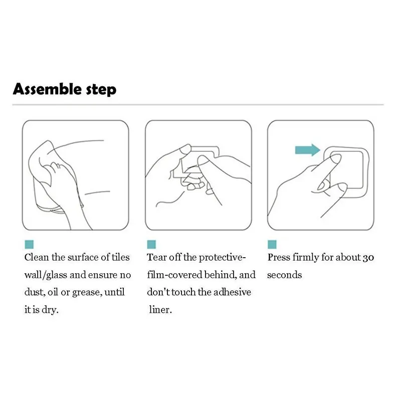 Легко установить: приклейте его там, где это необходимо (должна быть гладкая поверхность, например, керамическая плитка, металлические поверхности). Установите в течение 1 минуты. Может использоваться 24 часа после установки.