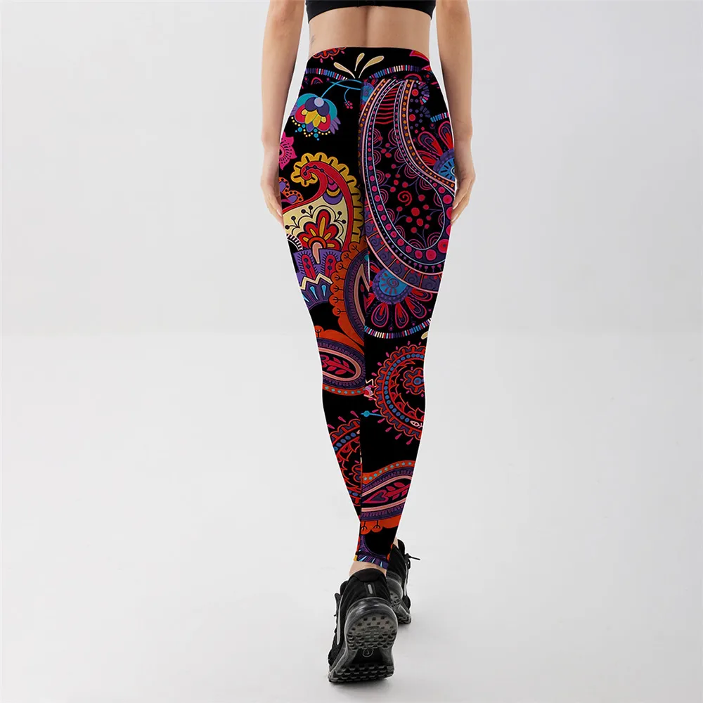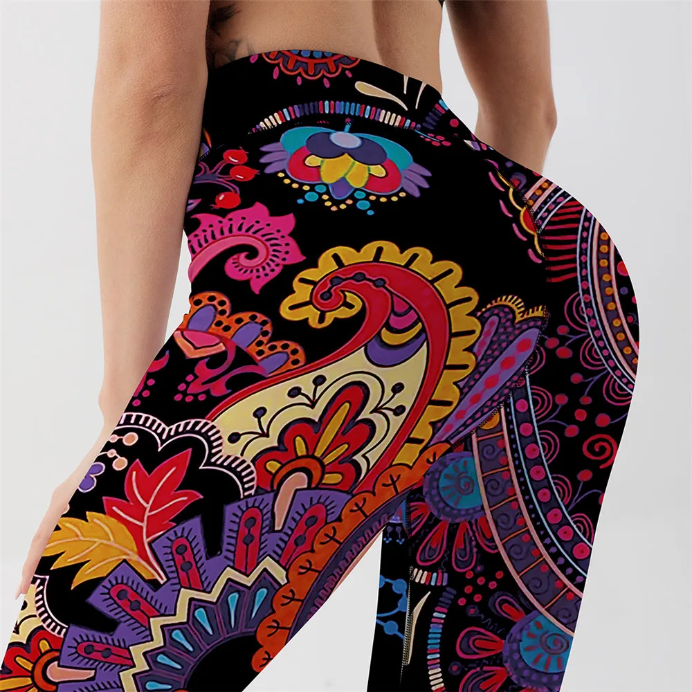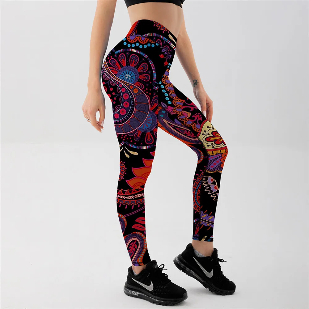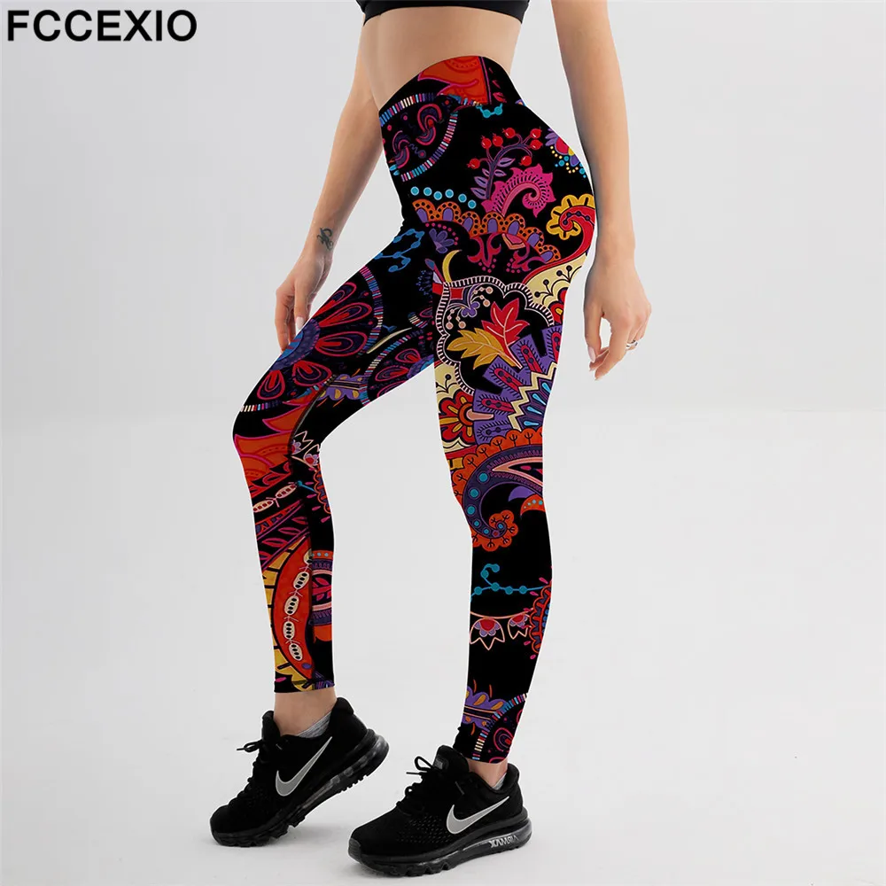 Женские леггинсы FCCEXIO, модные леггинсы с геометрическим цветочным принтом, пикантные тонкие эластичные брюки с высокой талией, штаны