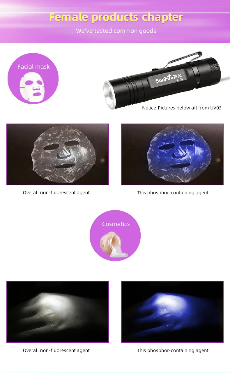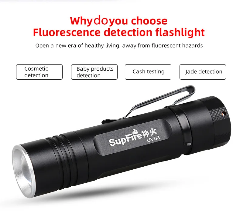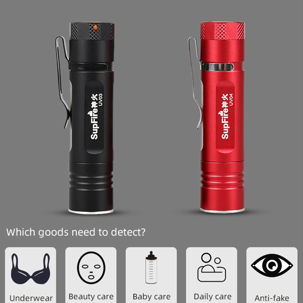 Светодиодный мини-фонарик Supfire UV03, фонарик-невидимка, фонарь для проверки, для охоты, для велосипеда
