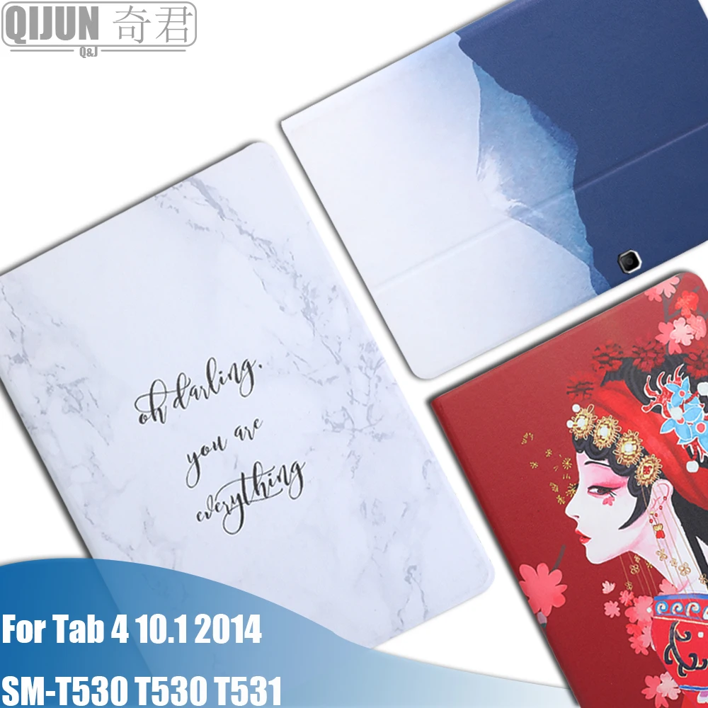 Чехол-книжка для планшета Samsung Galaxy Tab 4 10,1 дюйма 2014, защитный чехол-подставка, силиконовый мягкий чехол с рисунком, чехол для SM-T530 T535