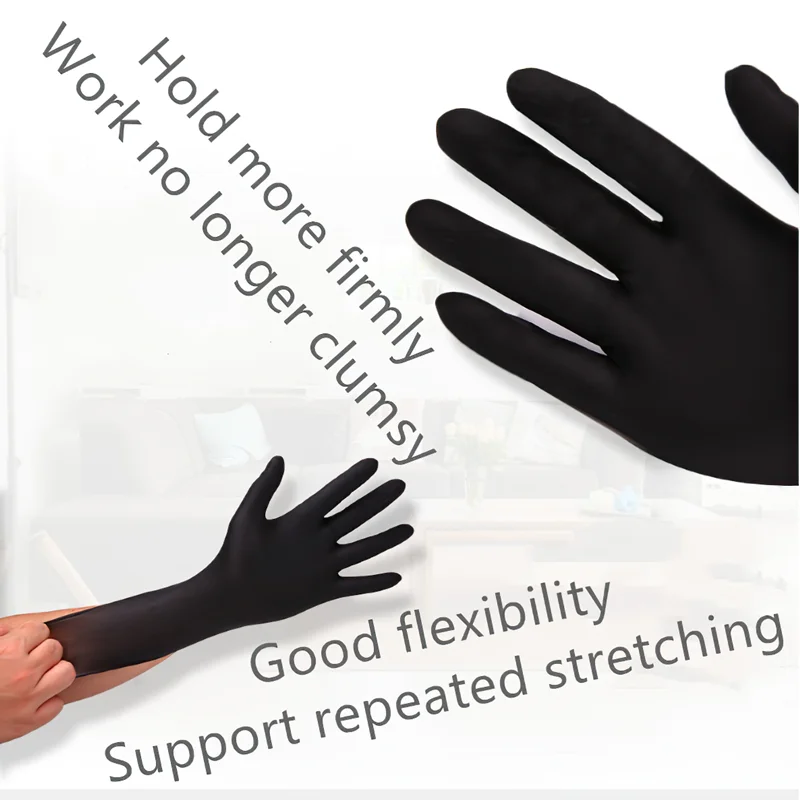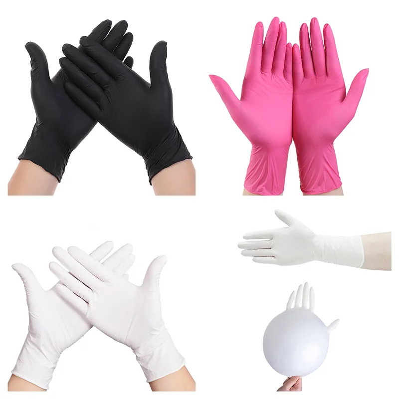 Одноразовые нитриловые перчатки, синтетические латексные резиновые гипоаллергенные перчатки для еды, кухни, уборки, черные розовые перчатки, 100 шт.