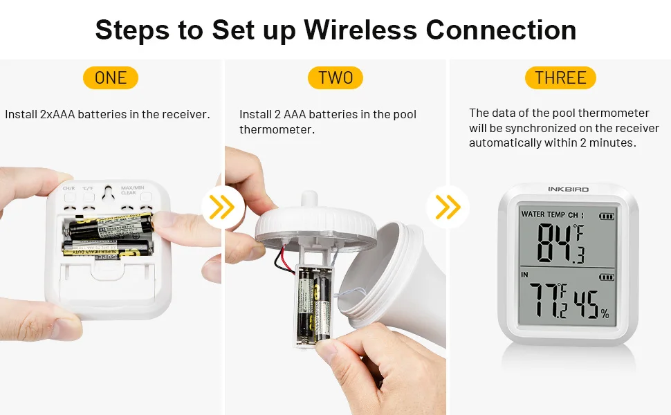 ☑3 совпадения за раз: Поддержка внутреннего приемника3 каналаОдин раз, что означает, что вы можете подключить 3 термометра бассейна к 1 получателю одновременно, отлично подходит для людей, которым требуется более 1 термометра во время ежедневного использования.