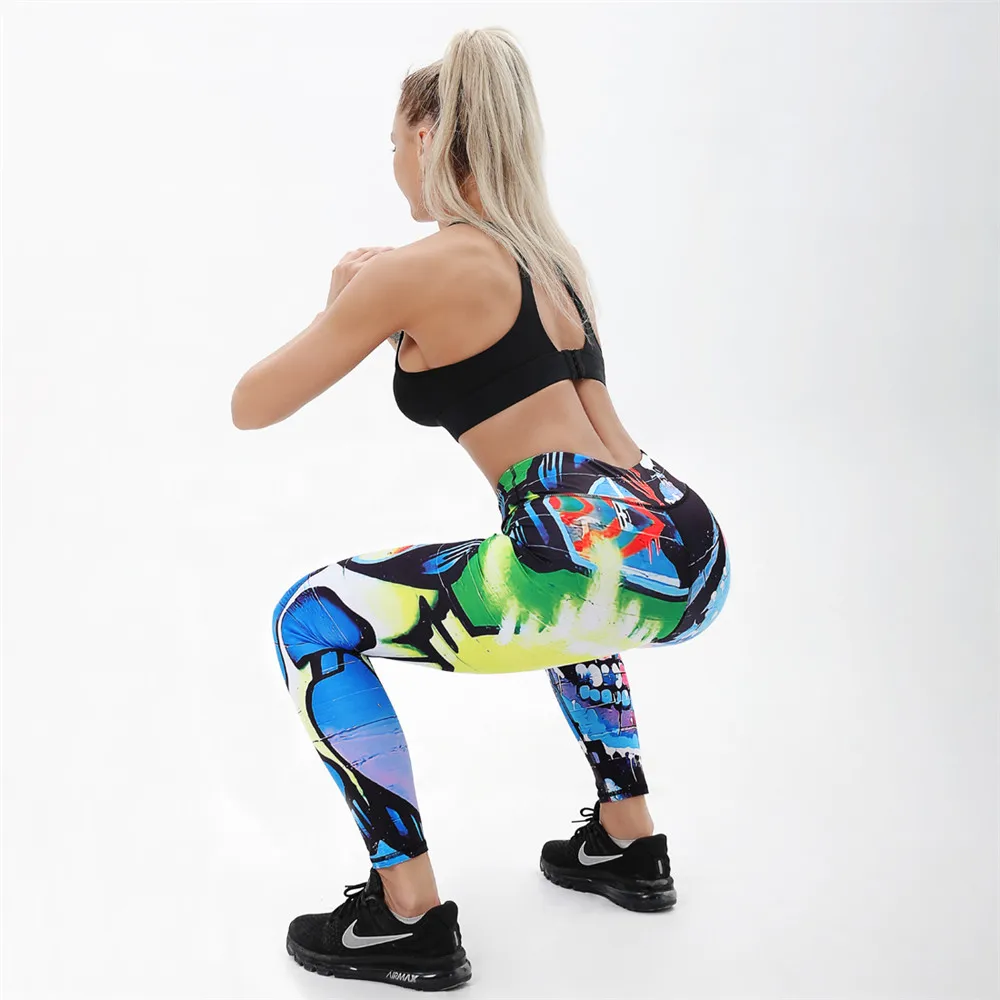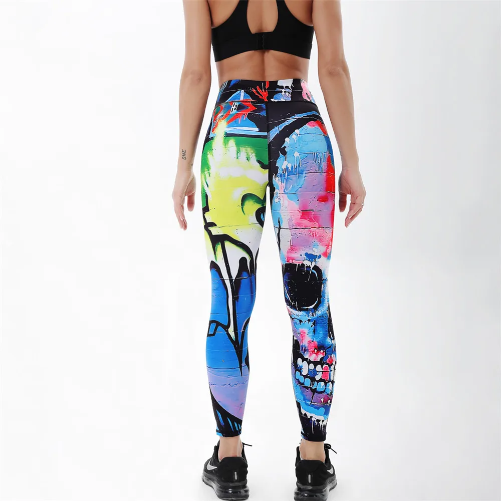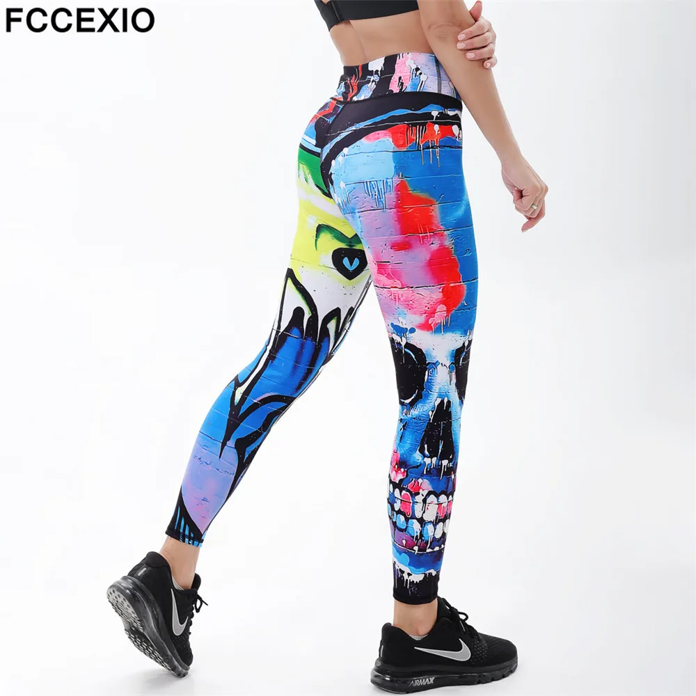 Женские леггинсы FCCEXIO, модные леггинсы с принтом в виде черепа и комиксов, пикантные тонкие эластичные брюки с высокой талией и эффектом пуш-ап для бега
