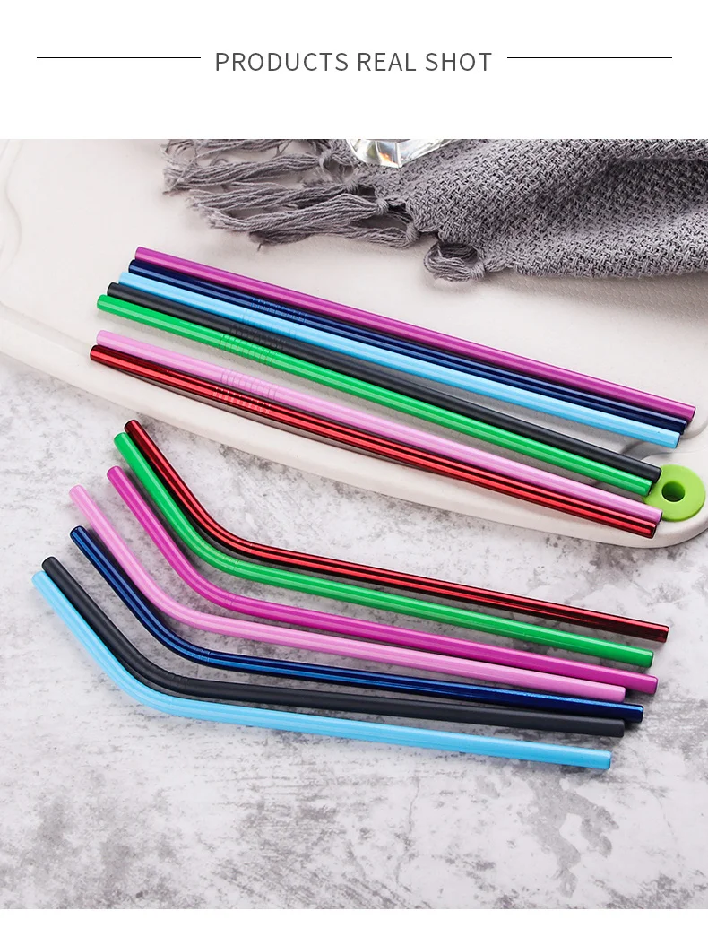6*215 мм, 10 цветов, экологически чистые, многоразовые металлические детали, 304 нержавеющая сталь, питьевые аксессуары для вечеринок, аксессуар для бара