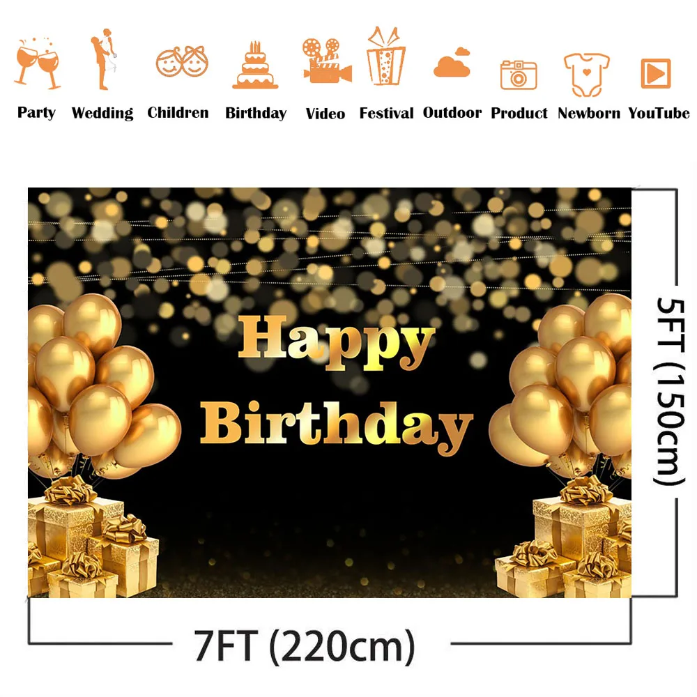 Фон для фотосъемки на день рождения с золотыми блестками, черный, с...