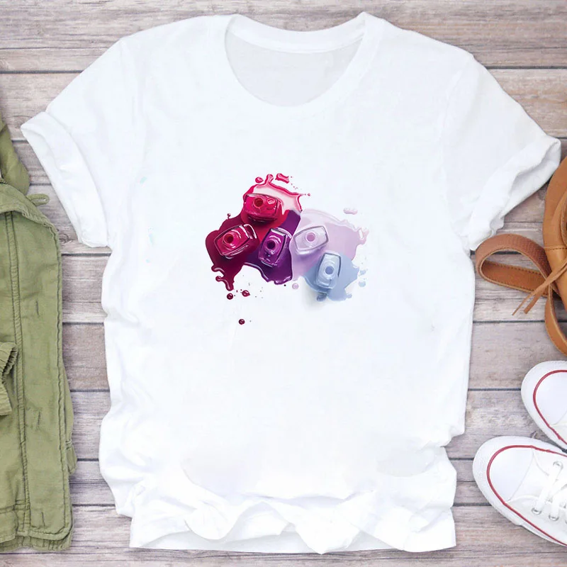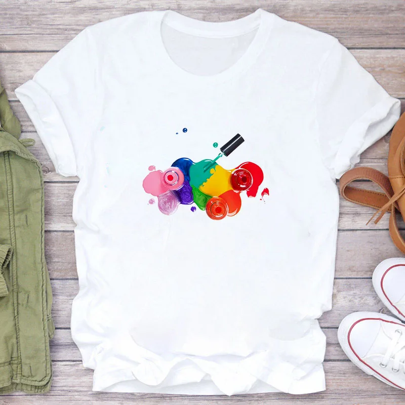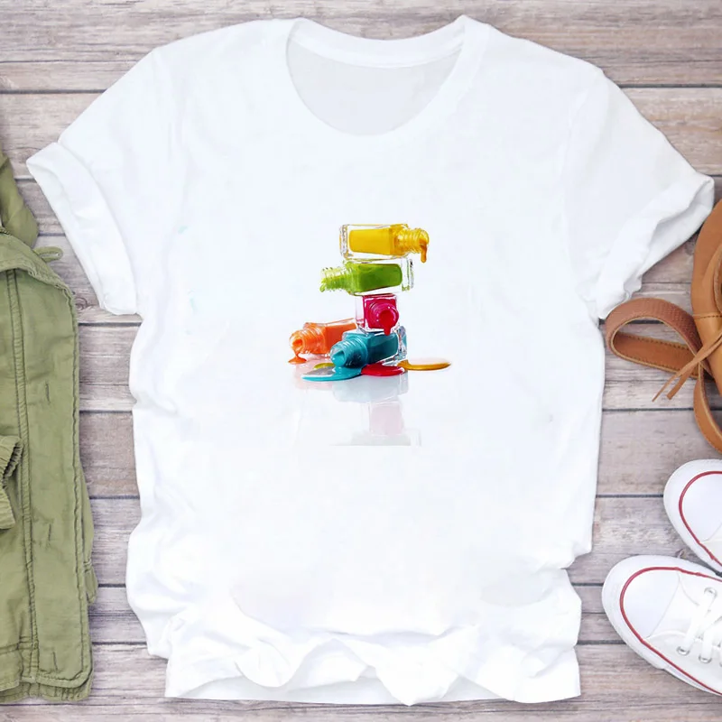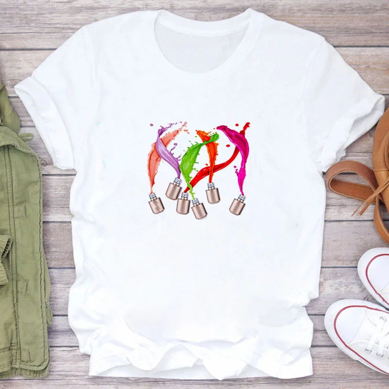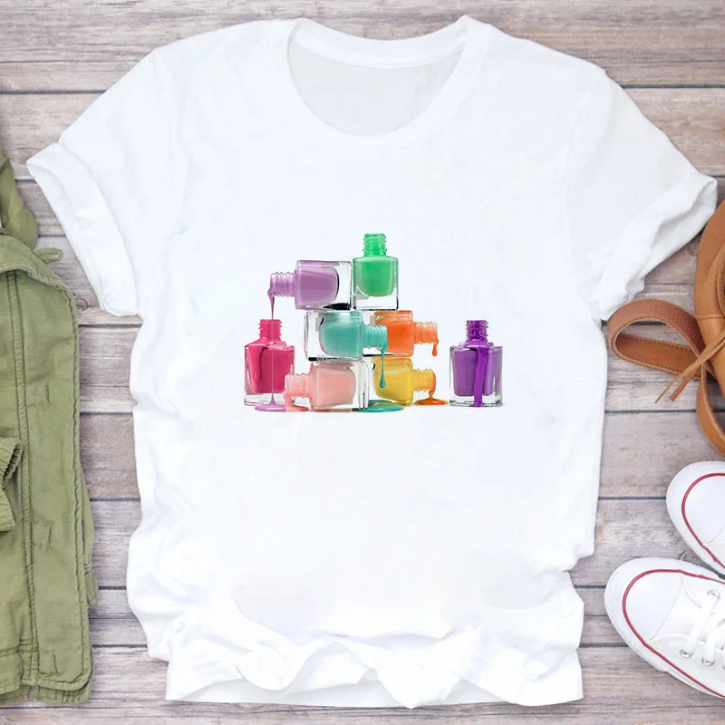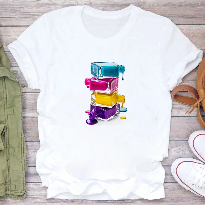 Женская футболка с 3D принтом в виде ногтей, цветная графическая мо...