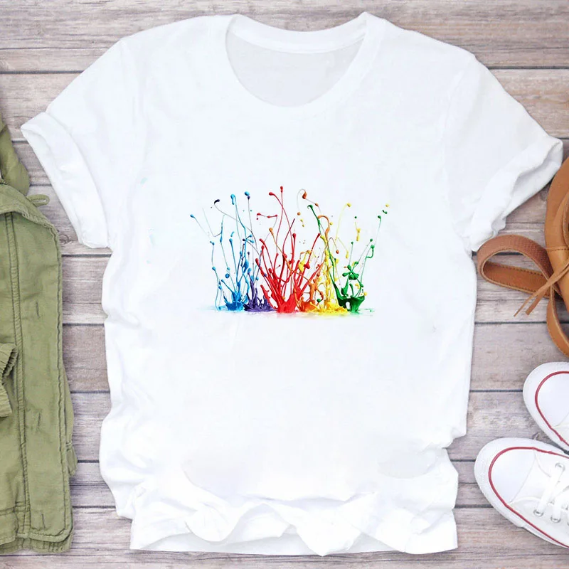 Мода каблуки новые акварельные высокие печататься Tshirt женщин 90s...