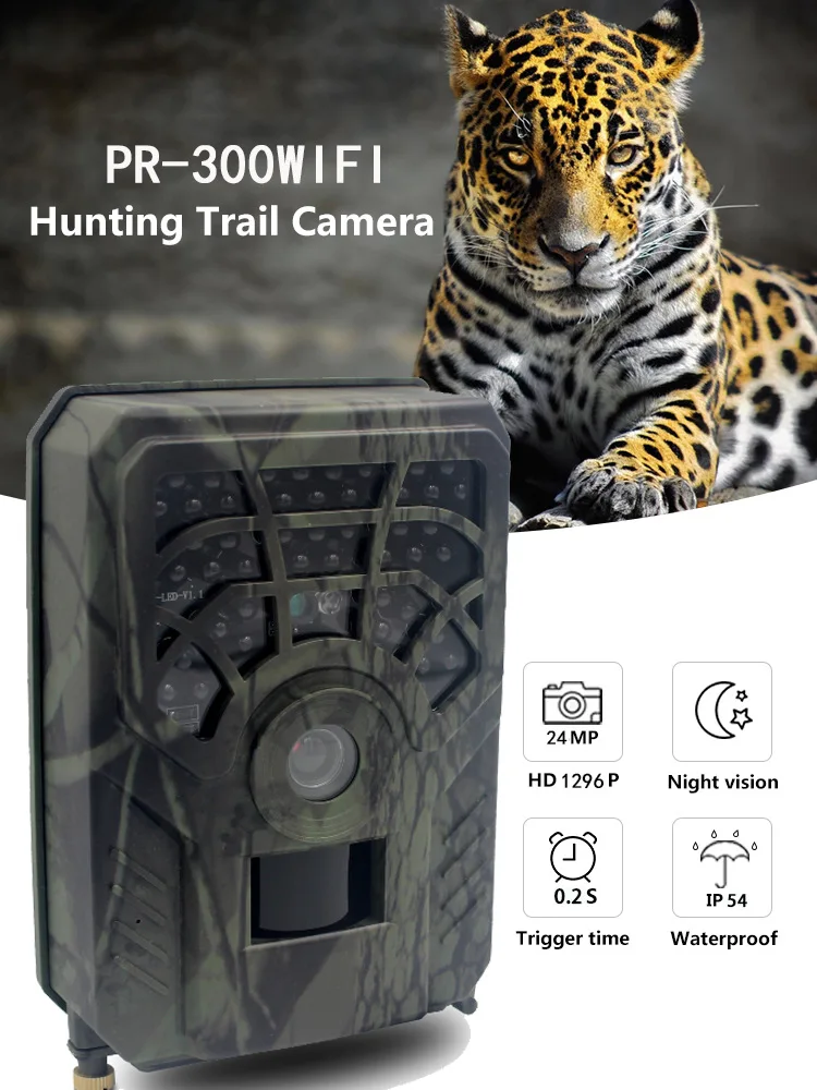 Камера для отслеживания дикой природы, 24 МП, ИК, ночное видение, беспроводная, PR300C, Wi-Fi, Охотничья камера, приложение для наблюдения и разведки