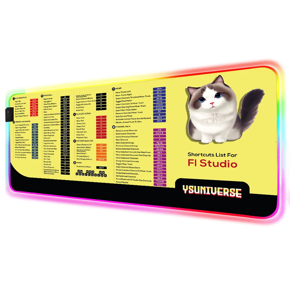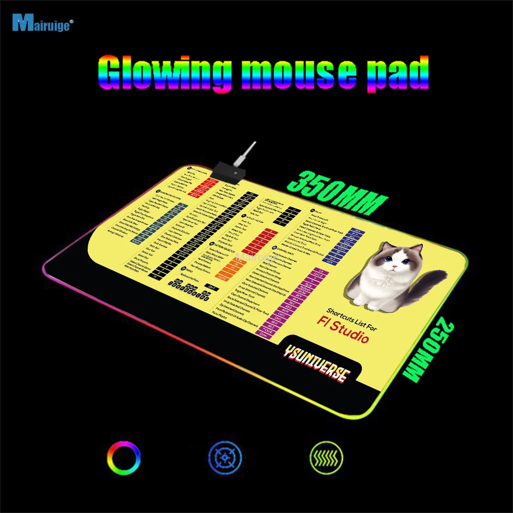Коврик для мыши с ярлыком для офисного стола RGB, Защитный Настольный коврик для мыши на запястье, Светодиодный светящийся коврик для клавиатуры, коврик для мыши, большой Настольный коврик Xl