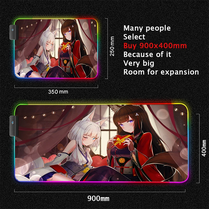 Коврик для мыши, RGB, usb-хаб, Azur Lane, аниме, Fox, для девочек, четыре USB-порта, док-станция, интерфейс Type C, многоинтерфейсный Настольный коврик