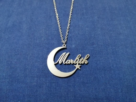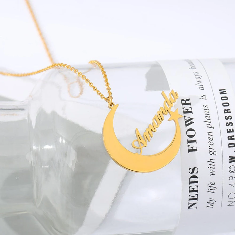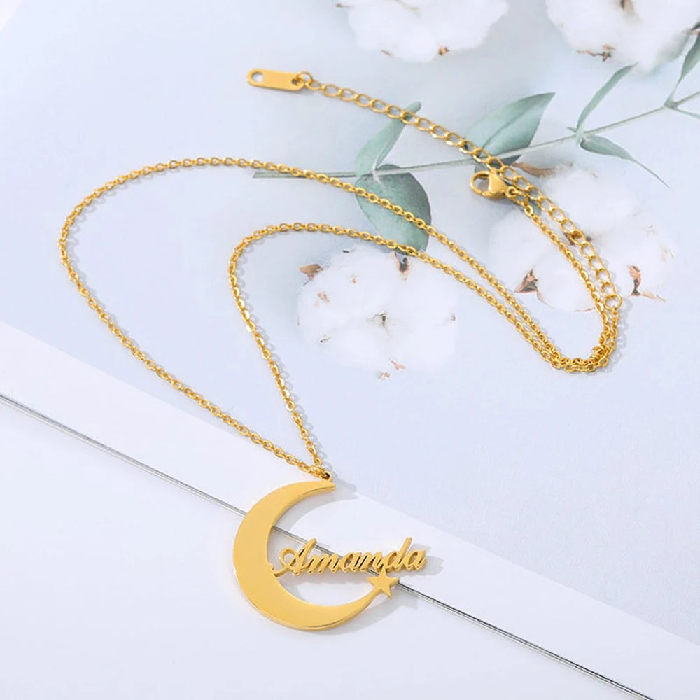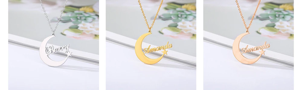 Название: MumuXing ожерелье с Луной и звездой женское пользовательское имя кулон ожерелье из нержавеющей стали ювелирные изделия на шею женские ювелирные изделия подарок на день рождения.