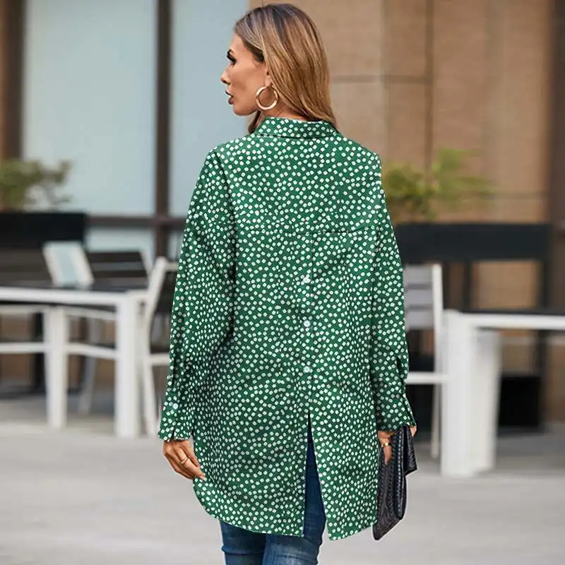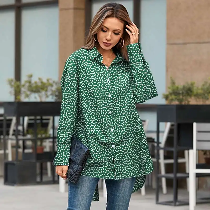 Женская рубашка с длинным рукавом, асимметричная, с цветочным принтом