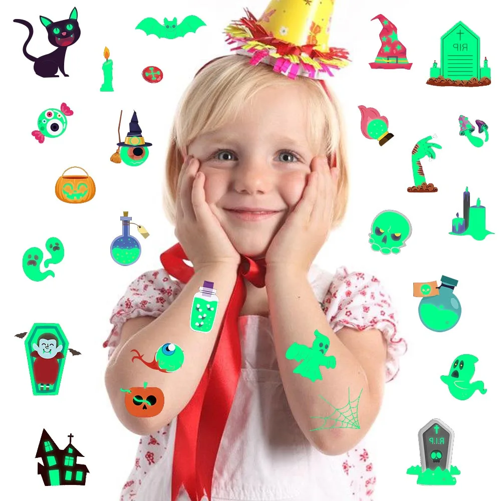 Светящиеся Мультяшные наклейки-татуировки в виде привидения, тыквы, ведьмы, временные водонепроницаемые одноразовые наклейки для Хэллоуина, вечеринки, детей, новый стиль