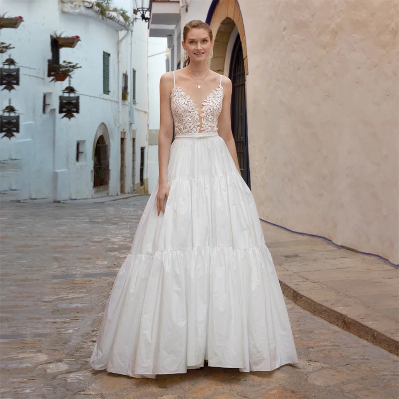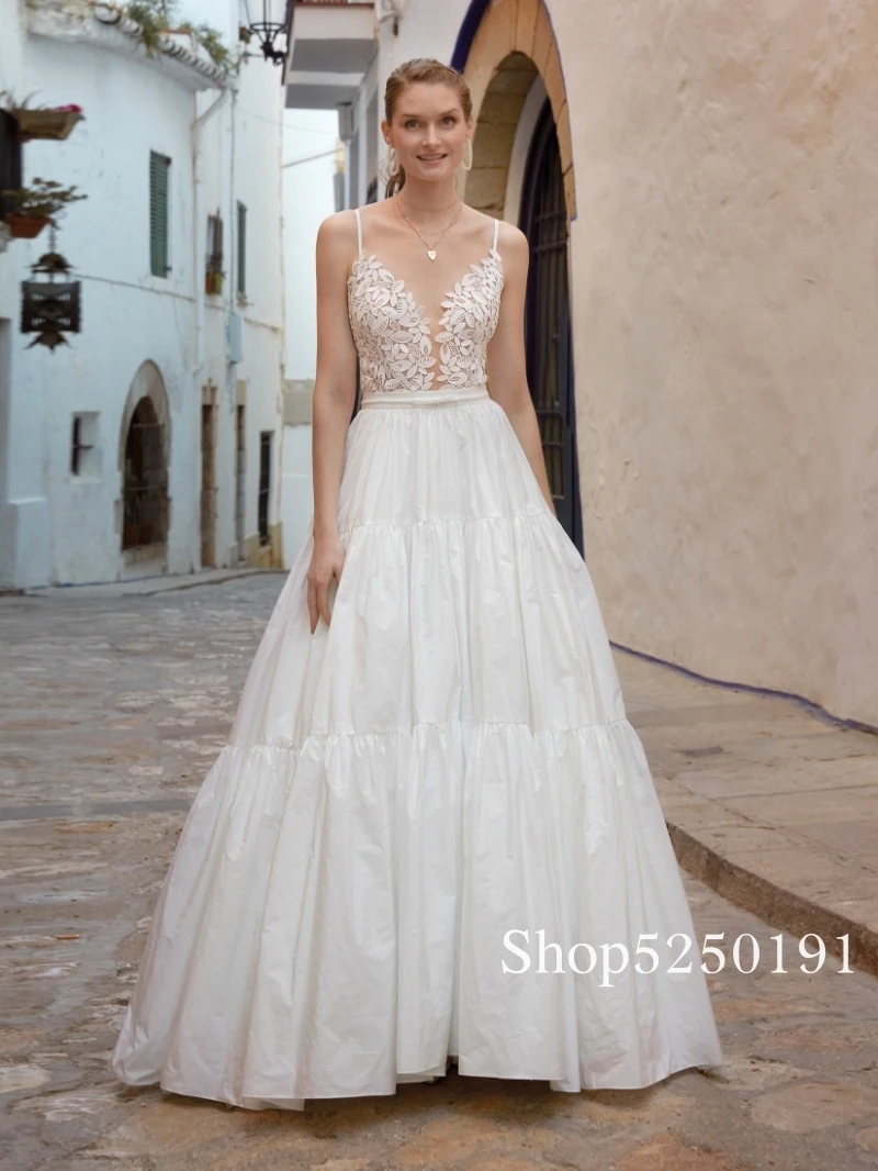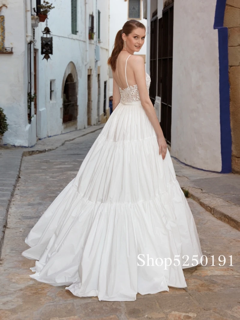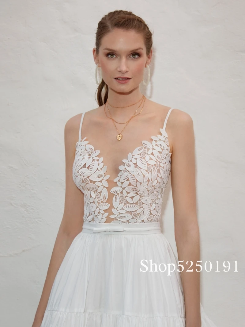 Пляжное свадебное платье на бретелях-спагетти, богемное кружевное платье в стиле бохо, свадебное платье с открытой спиной и V-образным вырезом, многоярусные свадебные платья
