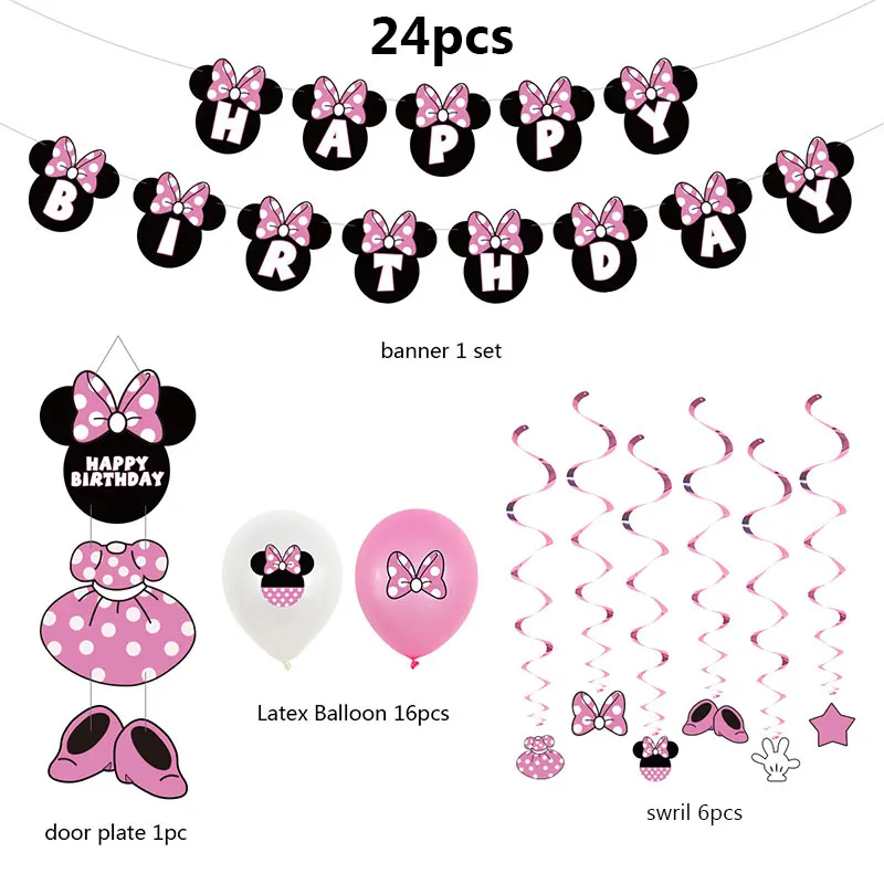 Украшения для дня рождения в стиле Диснея Минни, надувные шары с флагом, украшение на день рождения, товары для вечеринки, наборы для детских сцен